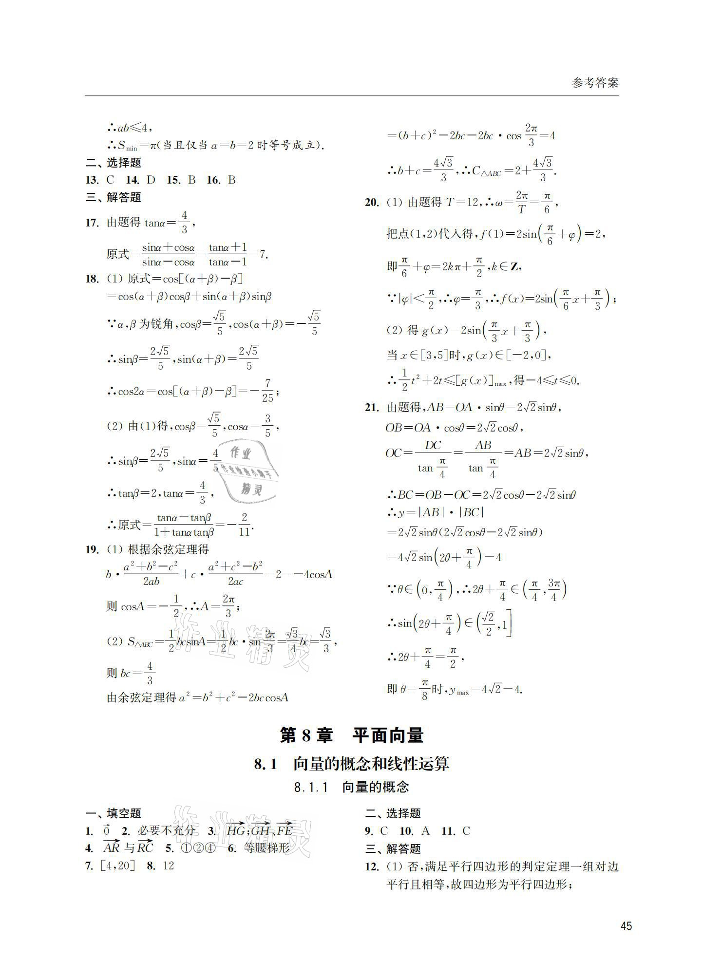 注:目前有些书本章节名称可能整理的还不是很完善,但都是按照顺序排列的,请同学们按照顺序仔细查找。练习册 2021年上海双新双基课课练高中数学必修第二册 答案主要是用来给同学们做完题方便对答案用的,请勿直接抄袭。