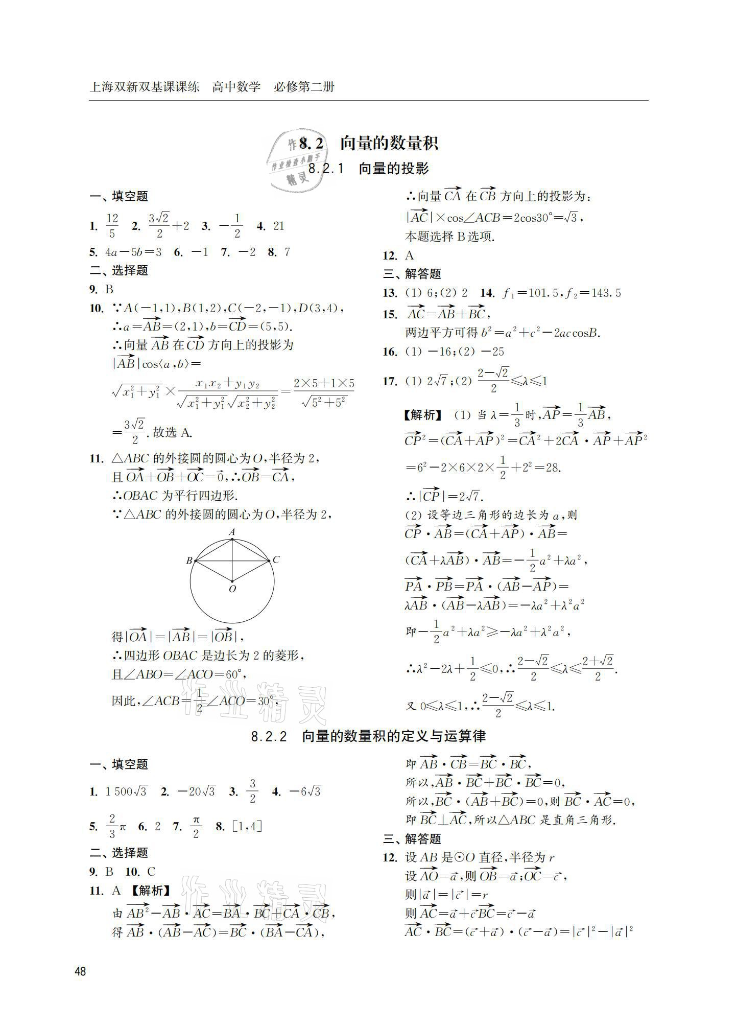 注:目前有些书本章节名称可能整理的还不是很完善,但都是按照顺序排列的,请同学们按照顺序仔细查找。练习册 2021年上海双新双基课课练高中数学必修第二册 答案主要是用来给同学们做完题方便对答案用的,请勿直接抄袭。