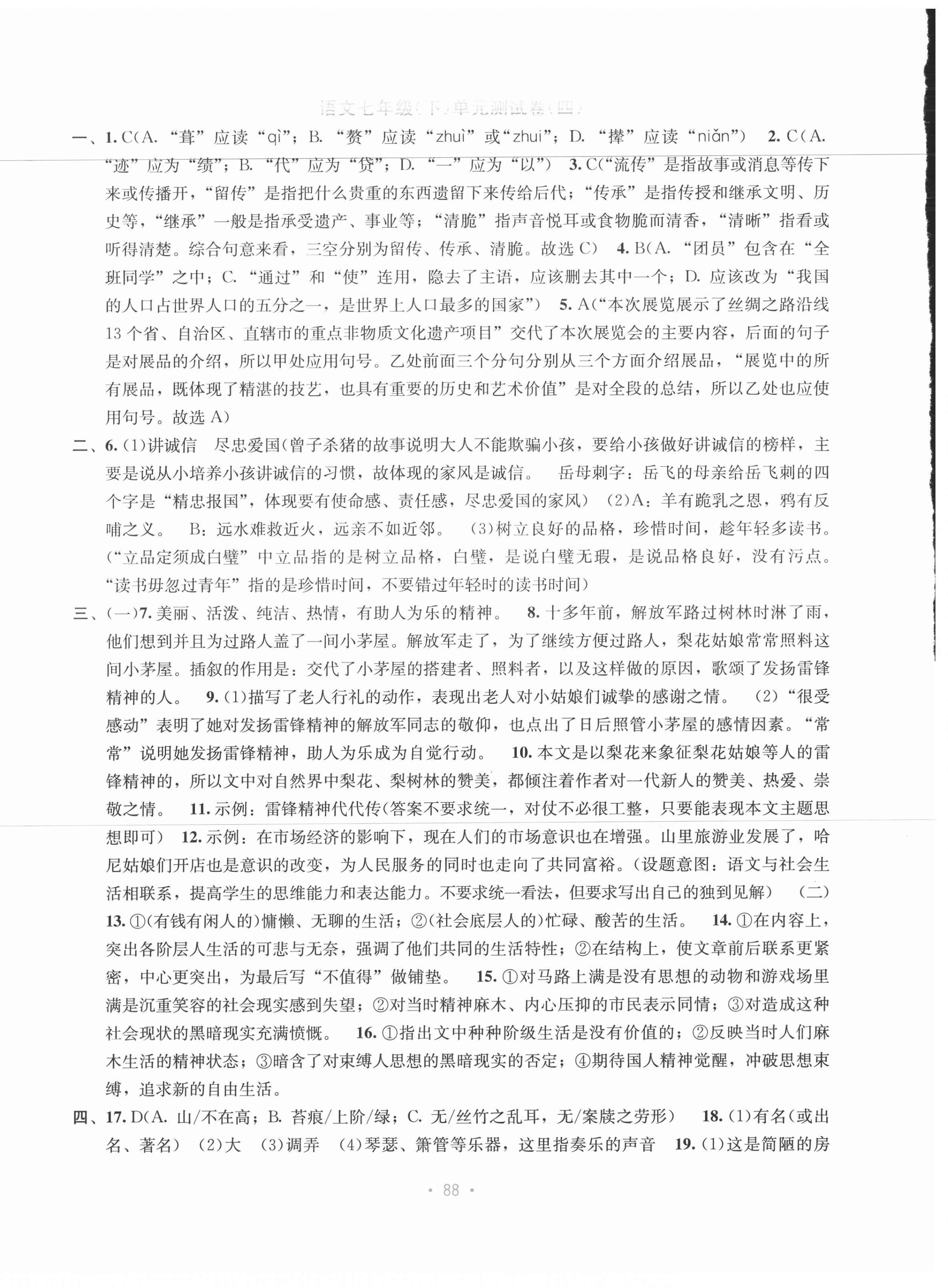 注:目前有些书本章节名称可能整理的还不是很完善,但都是按照顺序排列的,请同学们按照顺序仔细查找。练习册 2021年全程检测单元测试卷七年级语文下册人教版A 答案主要是用来给同学们做完题方便对答案用的,请勿直接抄袭。