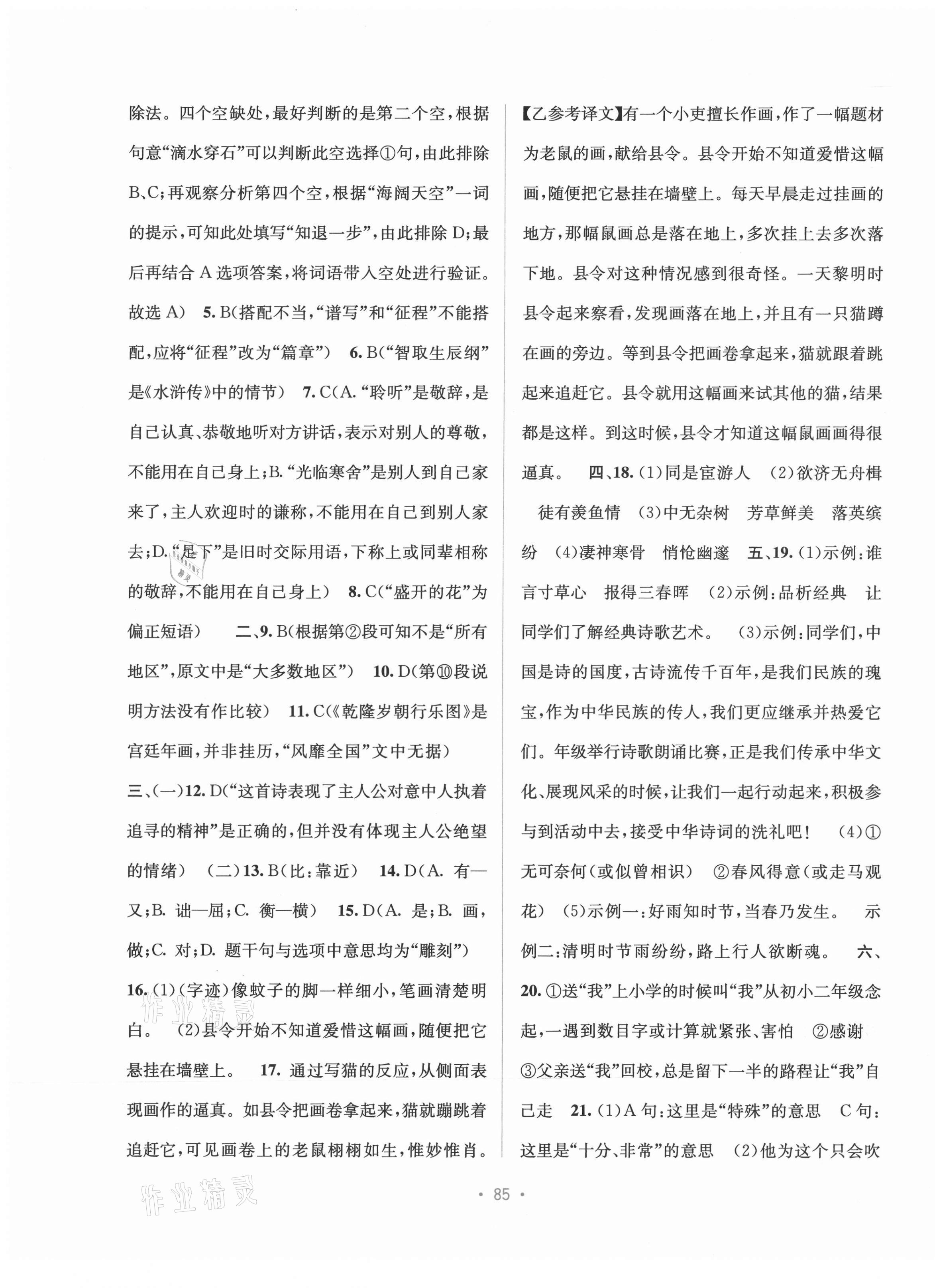 注:目前有些书本章节名称可能整理的还不是很完善,但都是按照顺序排列的,请同学们按照顺序仔细查找。练习册 2021年全程检测单元测试卷八年级语文下册人教版A版 答案主要是用来给同学们做完题方便对答案用的,请勿直接抄袭。