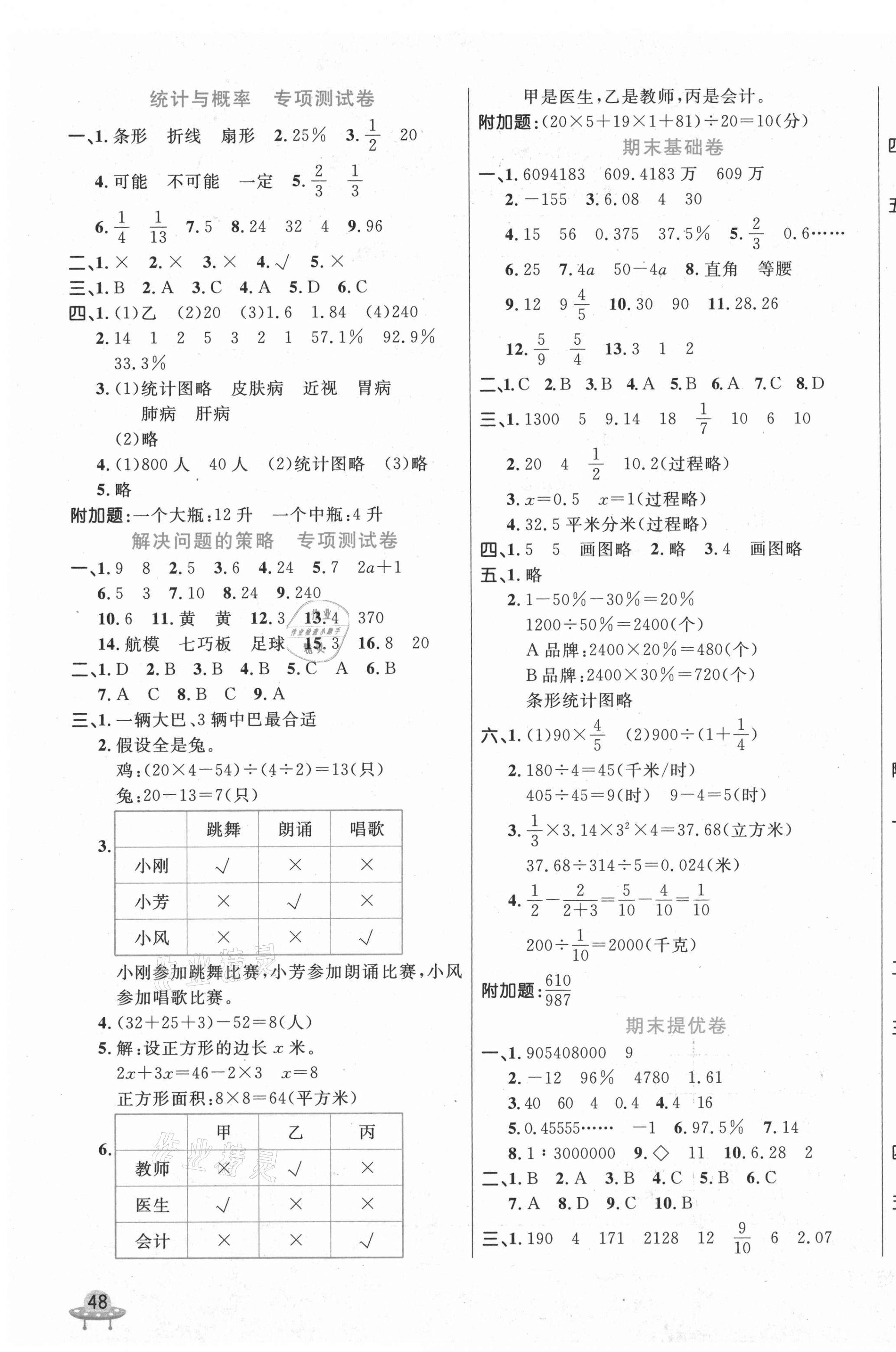 注:目前有些书本章节名称可能整理的还不是很完善,但都是按照顺序排列的,请同学们按照顺序仔细查找。练习册 2021年黄冈全优卷六年级数学下册北师大版 答案主要是用来给同学们做完题方便对答案用的,请勿直接抄袭。
