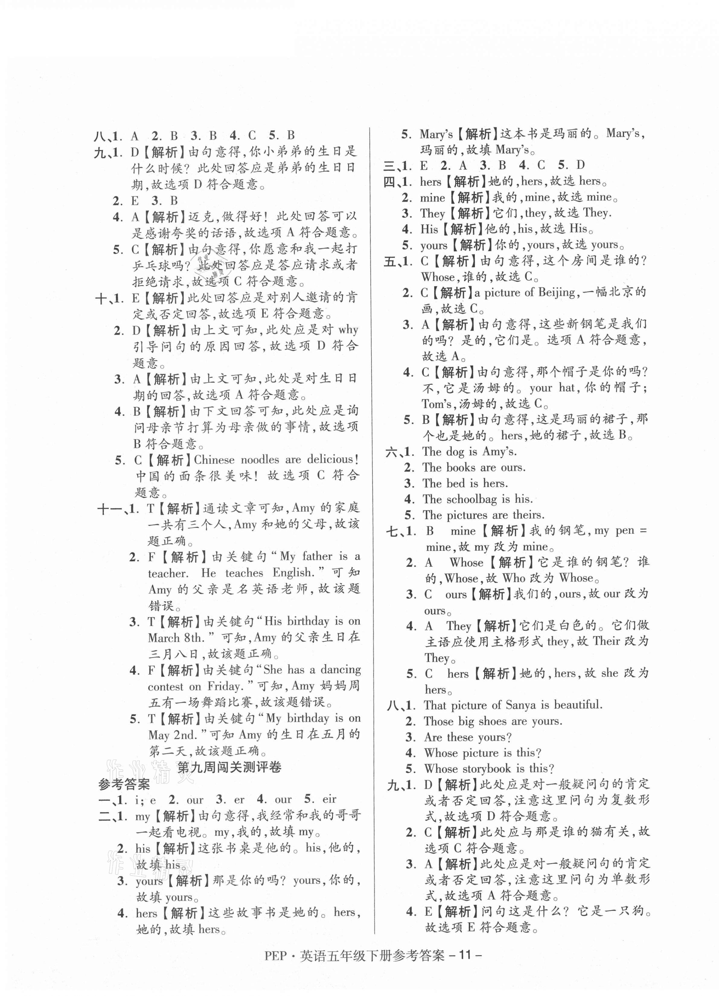 注:目前有些书本章节名称可能整理的还不是很完善,但都是按照顺序排列的,请同学们按照顺序仔细查找。练习册 2021年大显身手练考卷五年级英语下册人教PEP版 答案主要是用来给同学们做完题方便对答案用的,请勿直接抄袭。