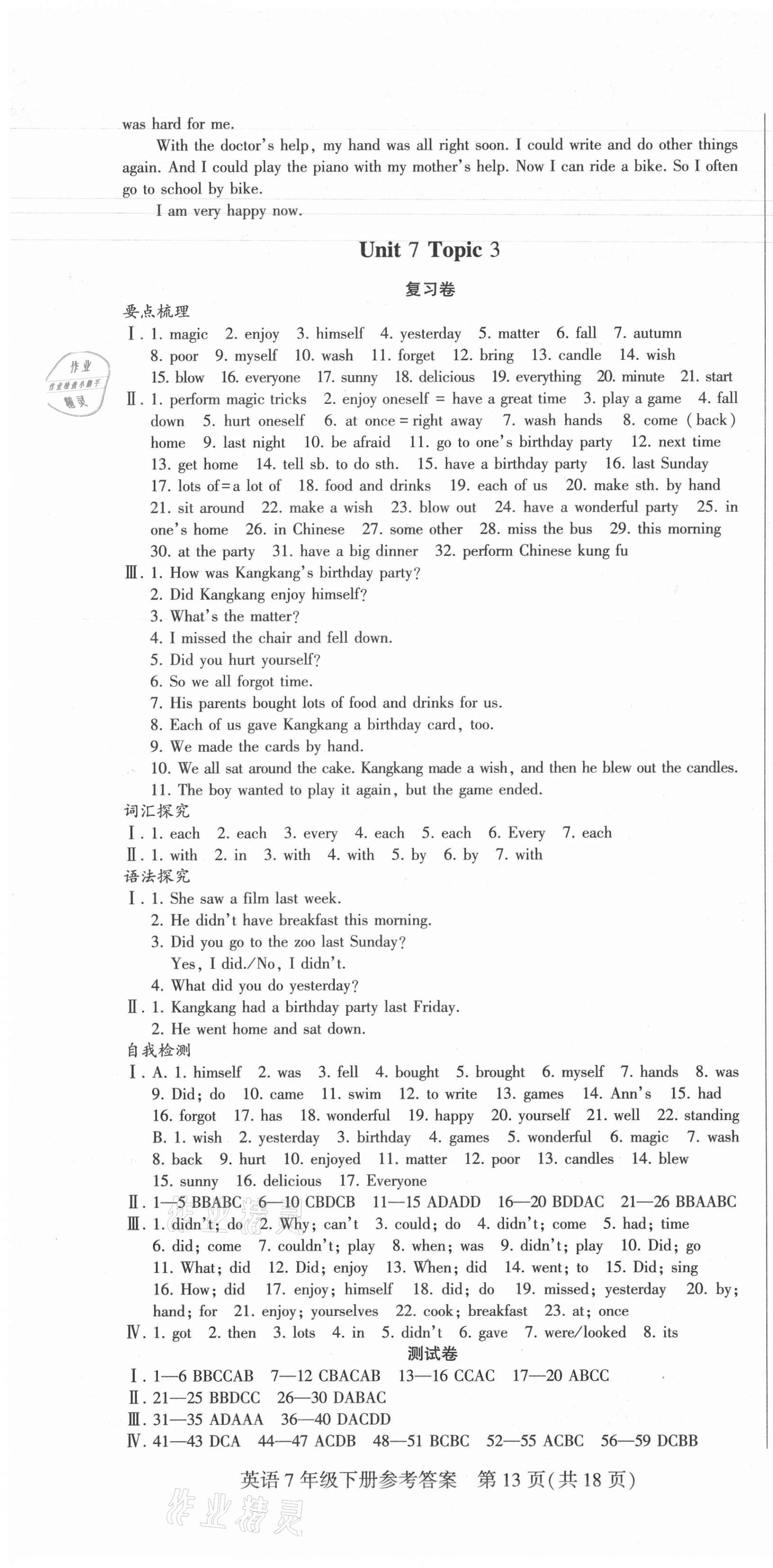 注:目前有些书本章节名称可能整理的还不是很完善,但都是按照顺序排列的,请同学们按照顺序仔细查找。练习册 2021年点金卷七年级英语下册人教版 答案主要是用来给同学们做完题方便对答案用的,请勿直接抄袭。