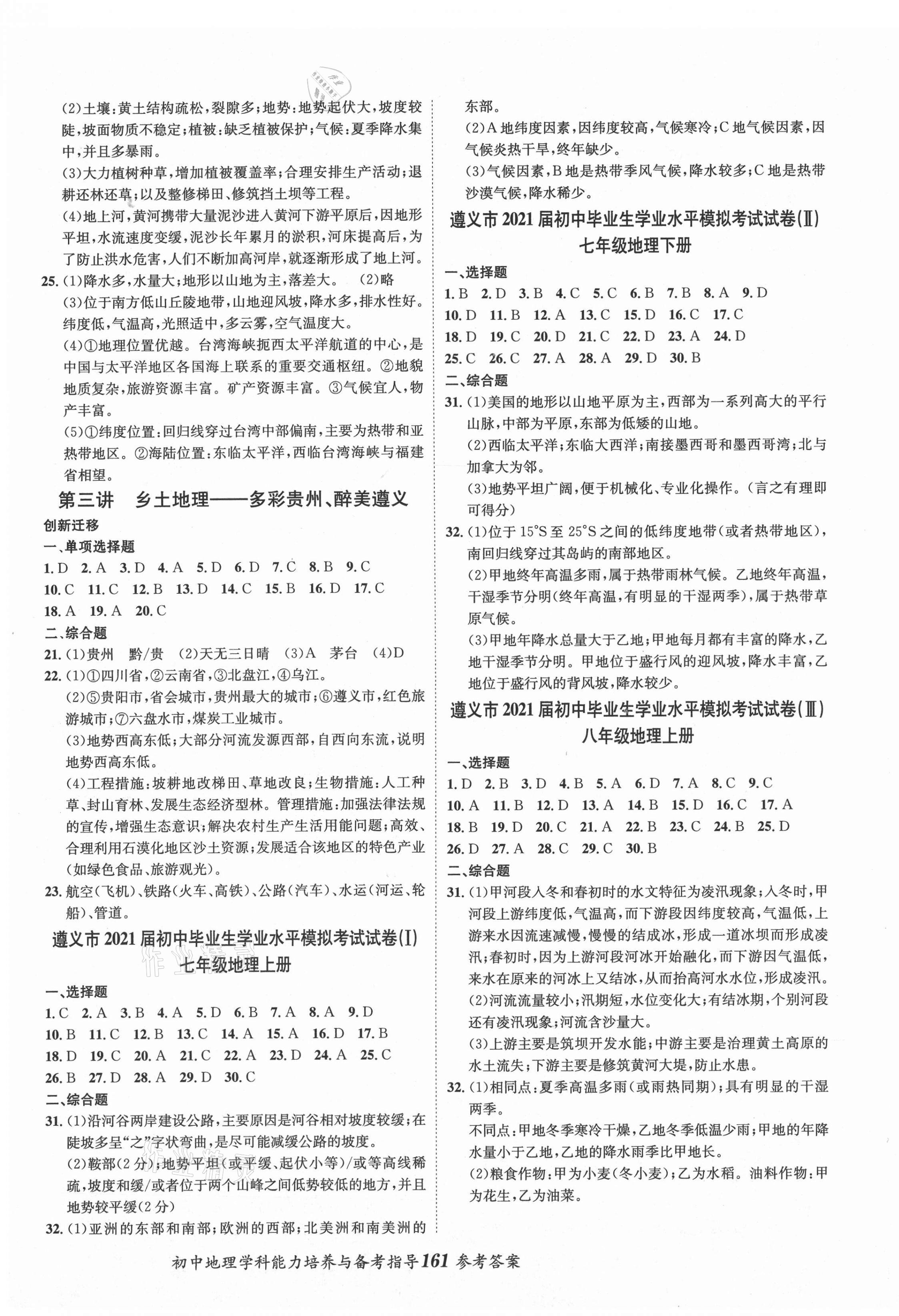 注:目前有些书本章节名称可能整理的还不是很完善,但都是按照顺序排列的,请同学们按照顺序仔细查找。练习册 2021年初中地理学科能力培养与备考指导湘教版 答案主要是用来给同学们做完题方便对答案用的,请勿直接抄袭。