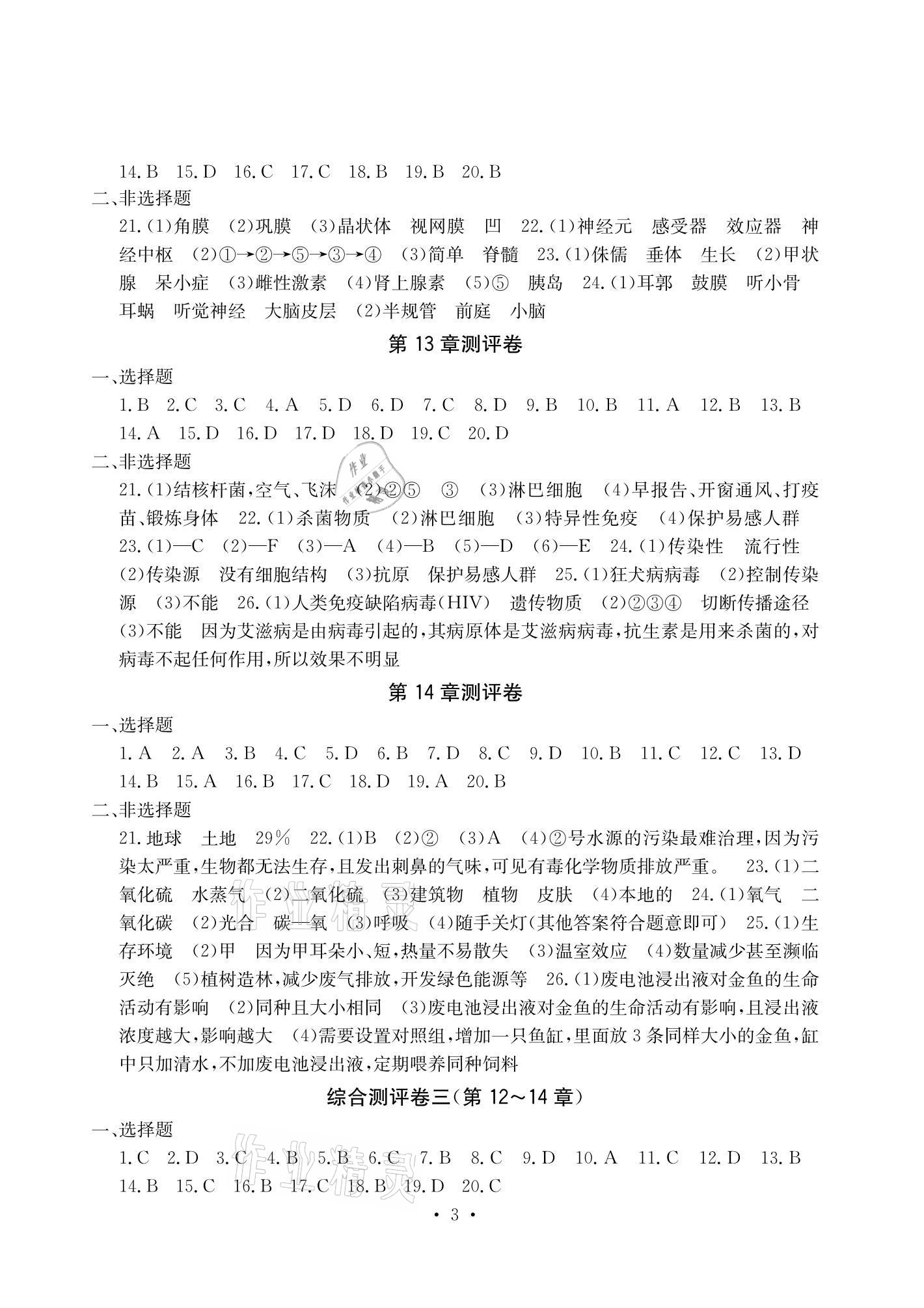 注:目前有些书本章节名称可能整理的还不是很完善,但都是按照顺序排列的,请同学们按照顺序仔细查找。练习册 2021年大显身手素质教育单元测评卷七年级生物下册北师大版检5贵港专版 答案主要是用来给同学们做完题方便对答案用的,请勿直接抄袭。