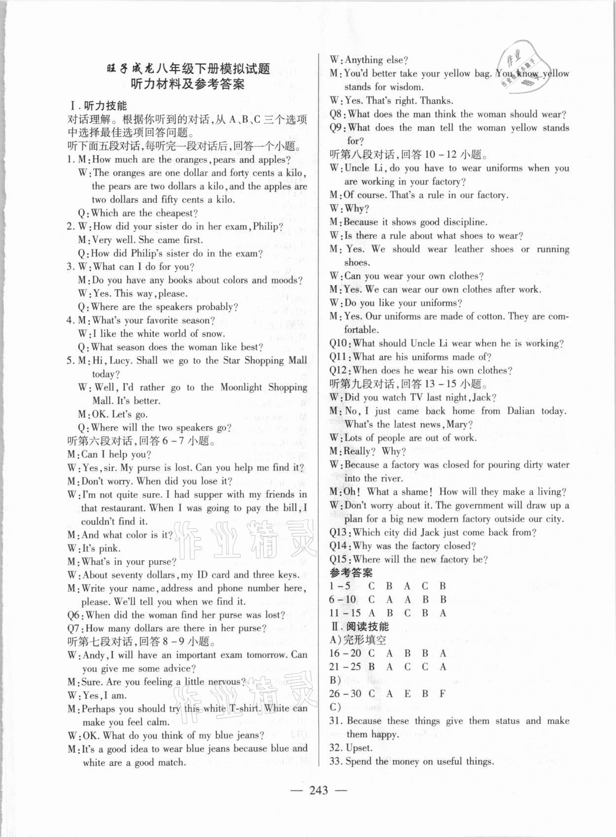 注:目前有些书本章节名称可能整理的还不是很完善,但都是按照顺序排列的,请同学们按照顺序仔细查找。练习册 2021年望子成龙初中学业水平全程测控英语 答案主要是用来给同学们做完题方便对答案用的,请勿直接抄袭。