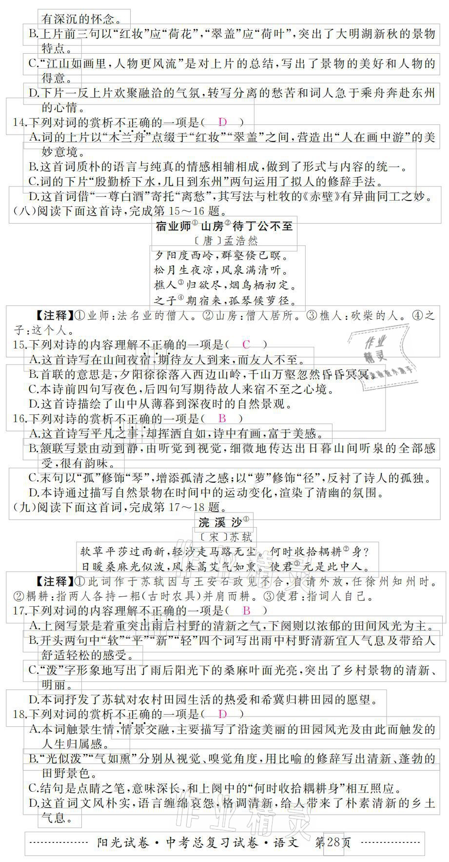 注:目前有些书本章节名称可能整理的还不是很完善,但都是按照顺序排列的,请同学们按照顺序仔细查找。练习册 2021年阳光试卷中考总复习试卷语文 答案主要是用来给同学们做完题方便对答案用的,请勿直接抄袭。