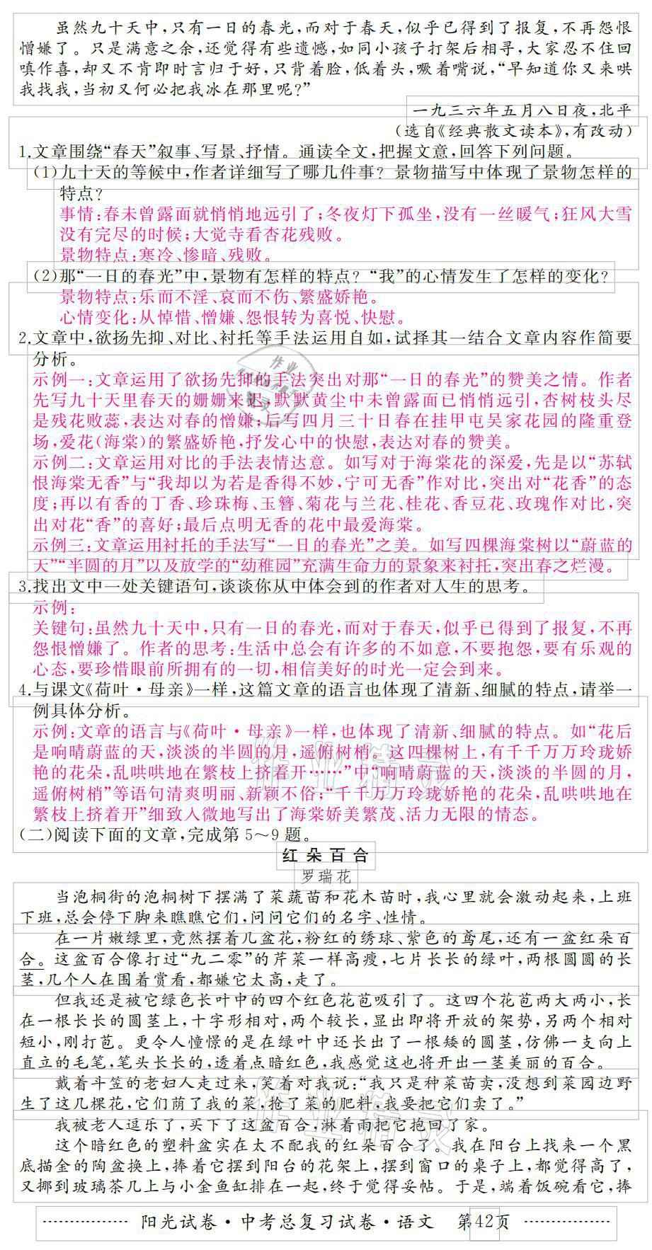 注:目前有些书本章节名称可能整理的还不是很完善,但都是按照顺序排列的,请同学们按照顺序仔细查找。练习册 2021年阳光试卷中考总复习试卷语文 答案主要是用来给同学们做完题方便对答案用的,请勿直接抄袭。