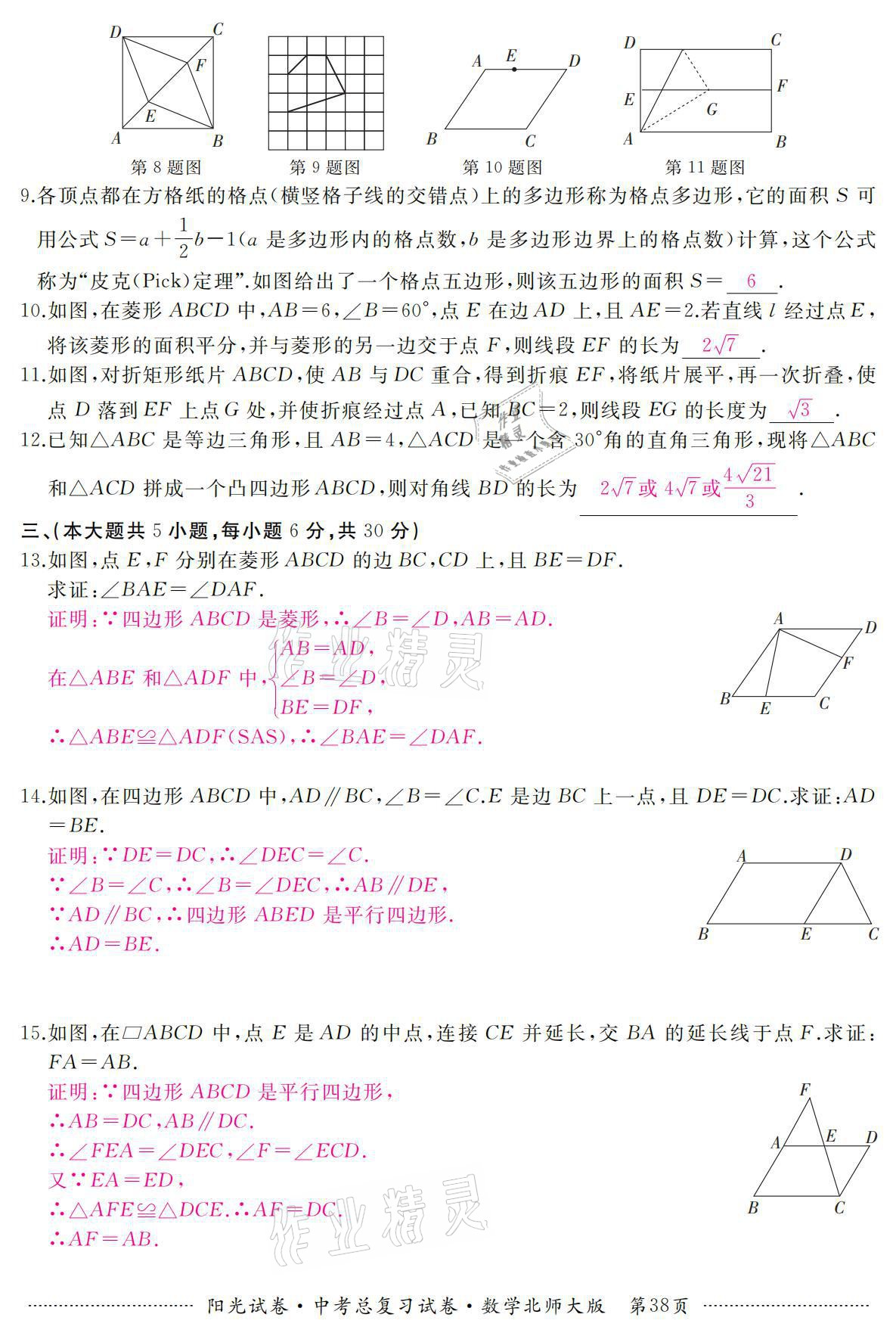 注:目前有些书本章节名称可能整理的还不是很完善,但都是按照顺序排列的,请同学们按照顺序仔细查找。练习册 2021年阳光试卷中考总复习试卷数学北师大版 答案主要是用来给同学们做完题方便对答案用的,请勿直接抄袭。