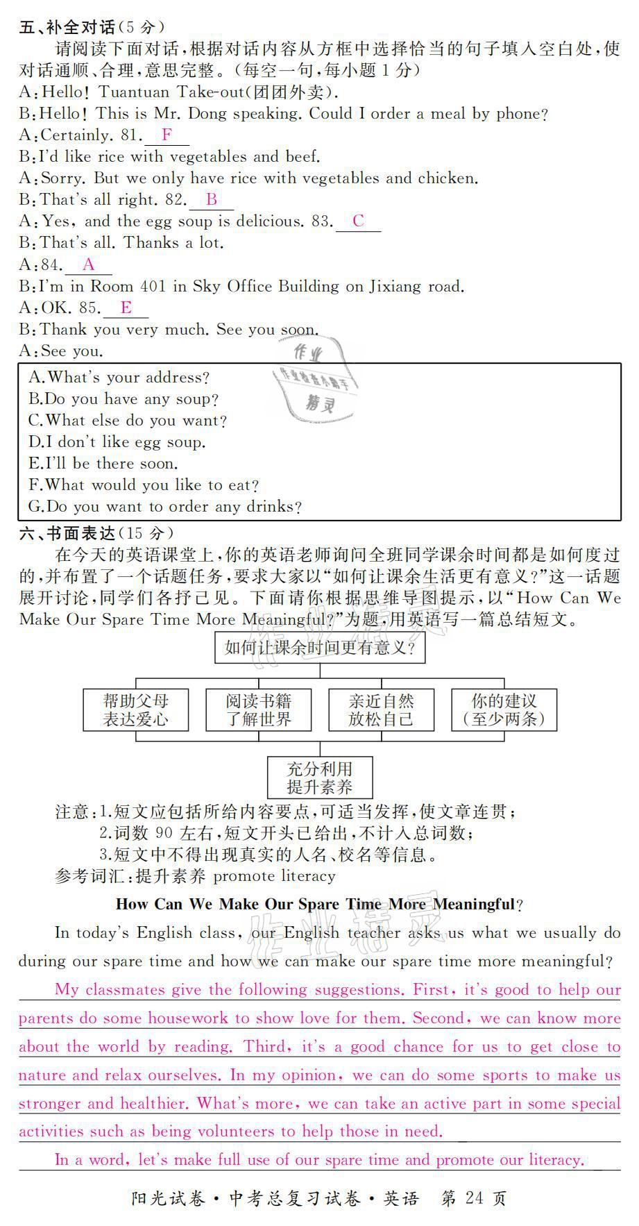 注:目前有些书本章节名称可能整理的还不是很完善,但都是按照顺序排列的,请同学们按照顺序仔细查找。练习册 2021年阳光试卷中考总复习试卷英语人教版 答案主要是用来给同学们做完题方便对答案用的,请勿直接抄袭。