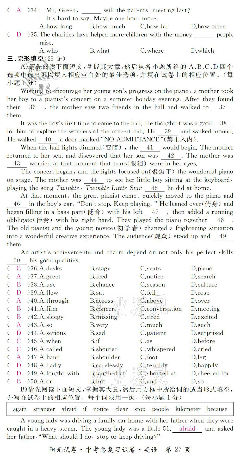 注:目前有些书本章节名称可能整理的还不是很完善,但都是按照顺序排列的,请同学们按照顺序仔细查找。练习册 2021年阳光试卷中考总复习试卷英语人教版 答案主要是用来给同学们做完题方便对答案用的,请勿直接抄袭。