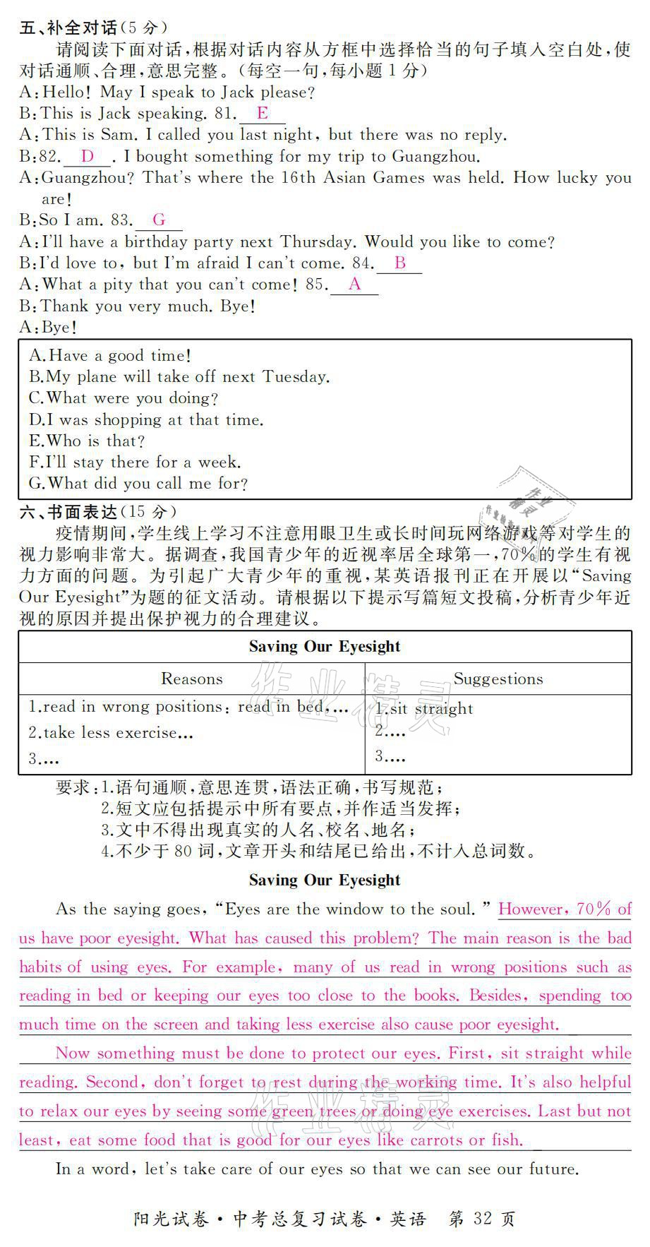 注:目前有些书本章节名称可能整理的还不是很完善,但都是按照顺序排列的,请同学们按照顺序仔细查找。练习册 2021年阳光试卷中考总复习试卷英语人教版 答案主要是用来给同学们做完题方便对答案用的,请勿直接抄袭。