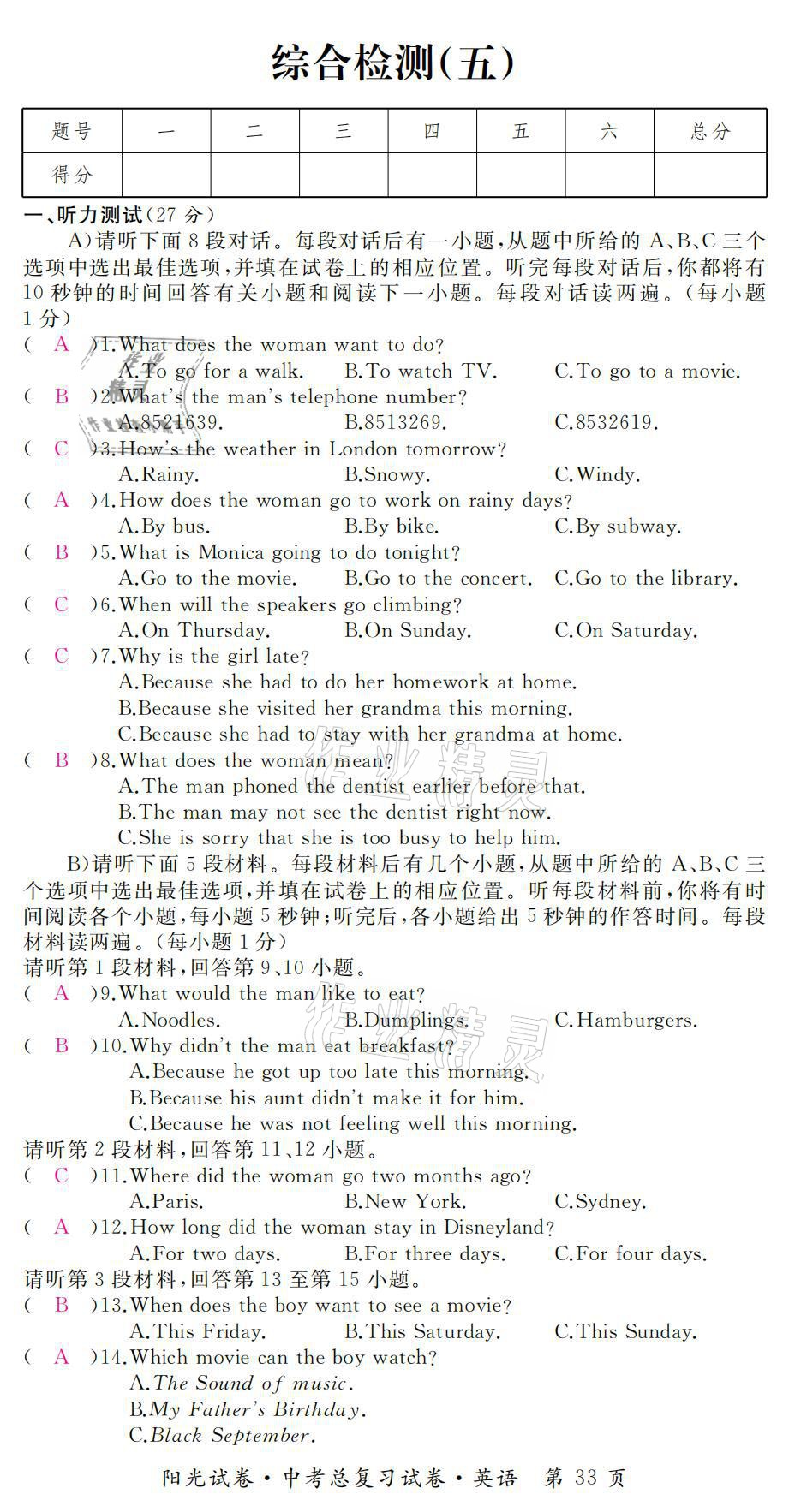 注:目前有些书本章节名称可能整理的还不是很完善,但都是按照顺序排列的,请同学们按照顺序仔细查找。练习册 2021年阳光试卷中考总复习试卷英语人教版 答案主要是用来给同学们做完题方便对答案用的,请勿直接抄袭。