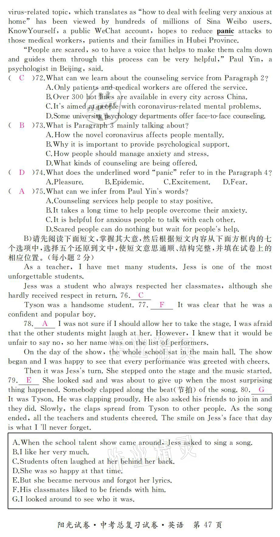 注:目前有些书本章节名称可能整理的还不是很完善,但都是按照顺序排列的,请同学们按照顺序仔细查找。练习册 2021年阳光试卷中考总复习试卷英语人教版 答案主要是用来给同学们做完题方便对答案用的,请勿直接抄袭。