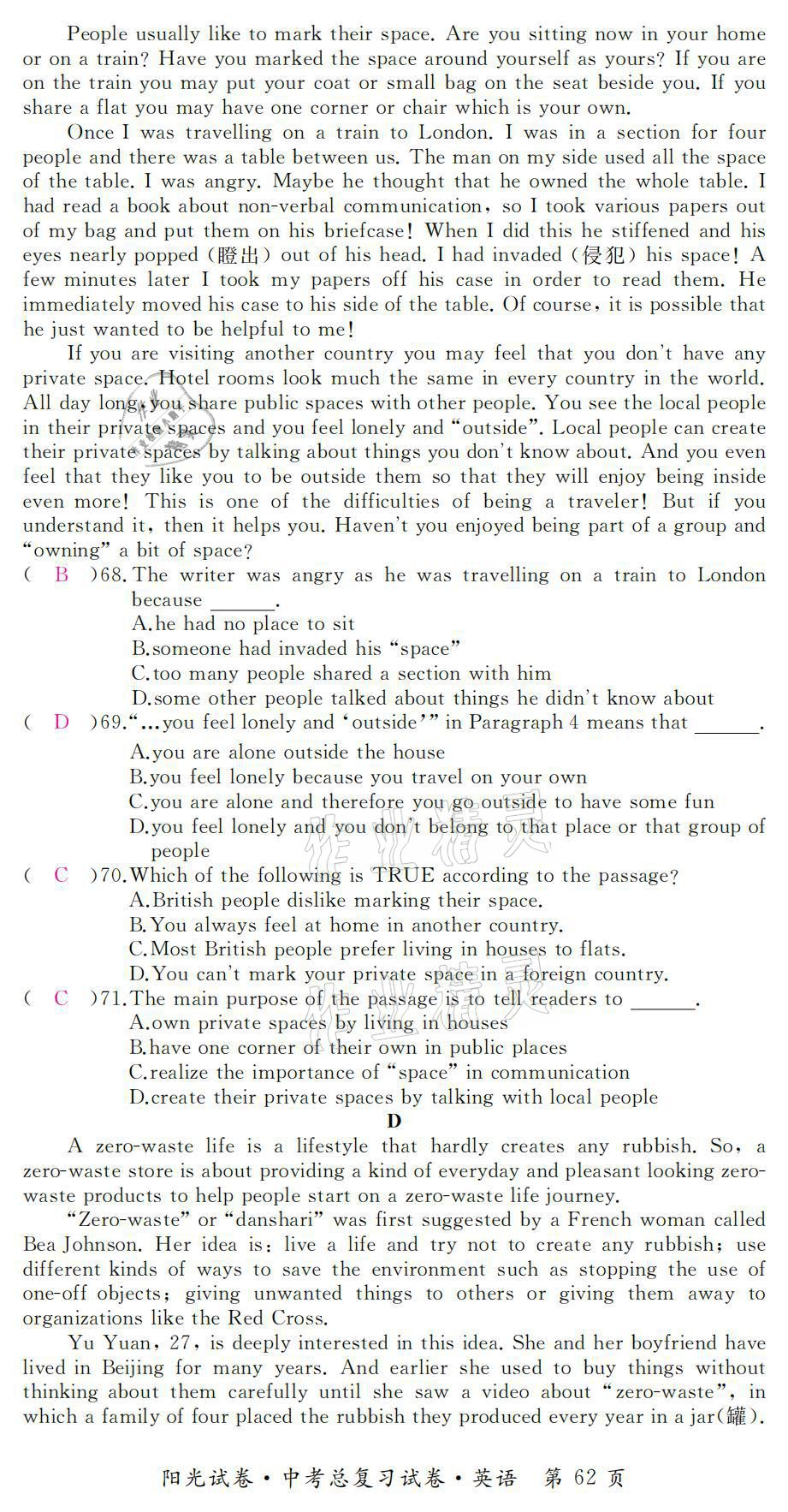 - 参考答案第62页