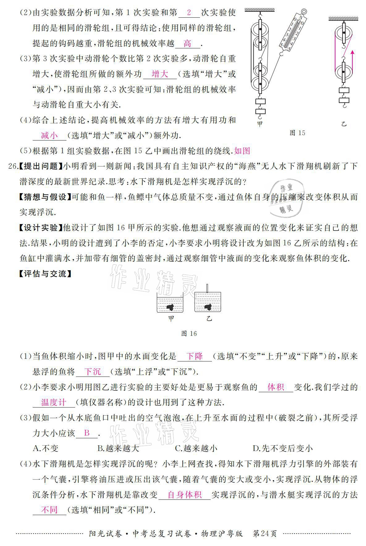 注:目前有些书本章节名称可能整理的还不是很完善,但都是按照顺序排列的,请同学们按照顺序仔细查找。练习册 2021年阳光试卷中考总复习试卷物理沪粤版 答案主要是用来给同学们做完题方便对答案用的,请勿直接抄袭。