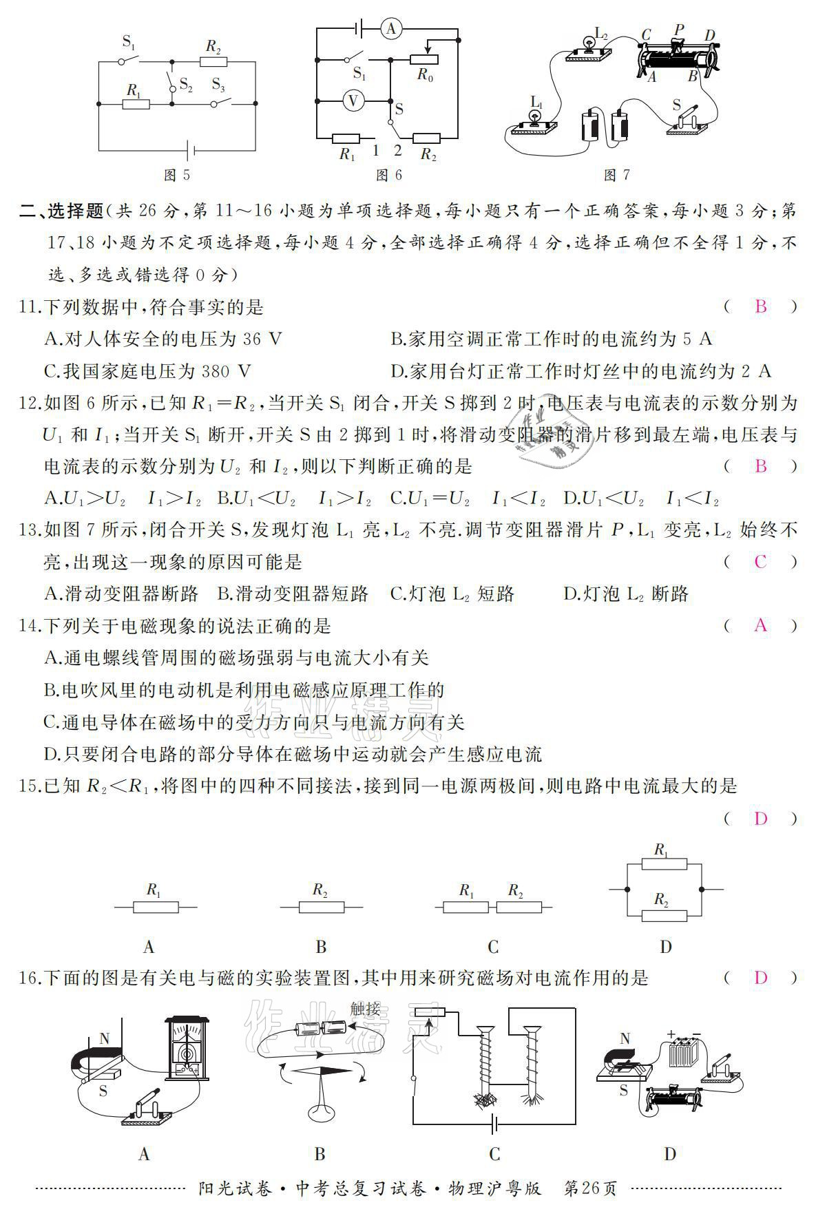 注:目前有些书本章节名称可能整理的还不是很完善,但都是按照顺序排列的,请同学们按照顺序仔细查找。练习册 2021年阳光试卷中考总复习试卷物理沪粤版 答案主要是用来给同学们做完题方便对答案用的,请勿直接抄袭。