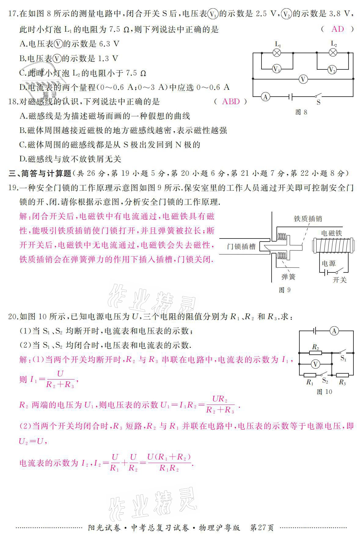 注:目前有些书本章节名称可能整理的还不是很完善,但都是按照顺序排列的,请同学们按照顺序仔细查找。练习册 2021年阳光试卷中考总复习试卷物理沪粤版 答案主要是用来给同学们做完题方便对答案用的,请勿直接抄袭。