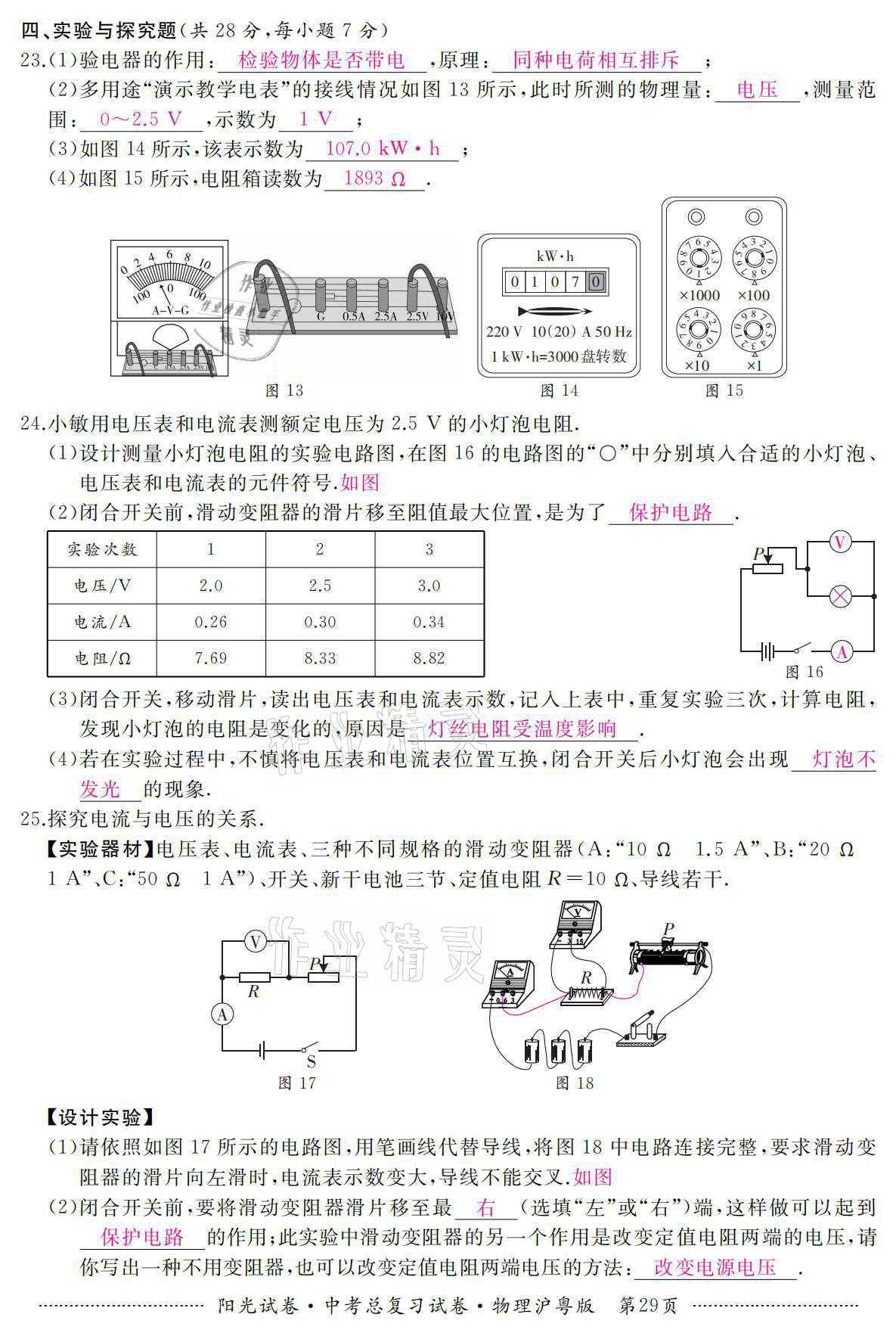 注:目前有些书本章节名称可能整理的还不是很完善,但都是按照顺序排列的,请同学们按照顺序仔细查找。练习册 2021年阳光试卷中考总复习试卷物理沪粤版 答案主要是用来给同学们做完题方便对答案用的,请勿直接抄袭。