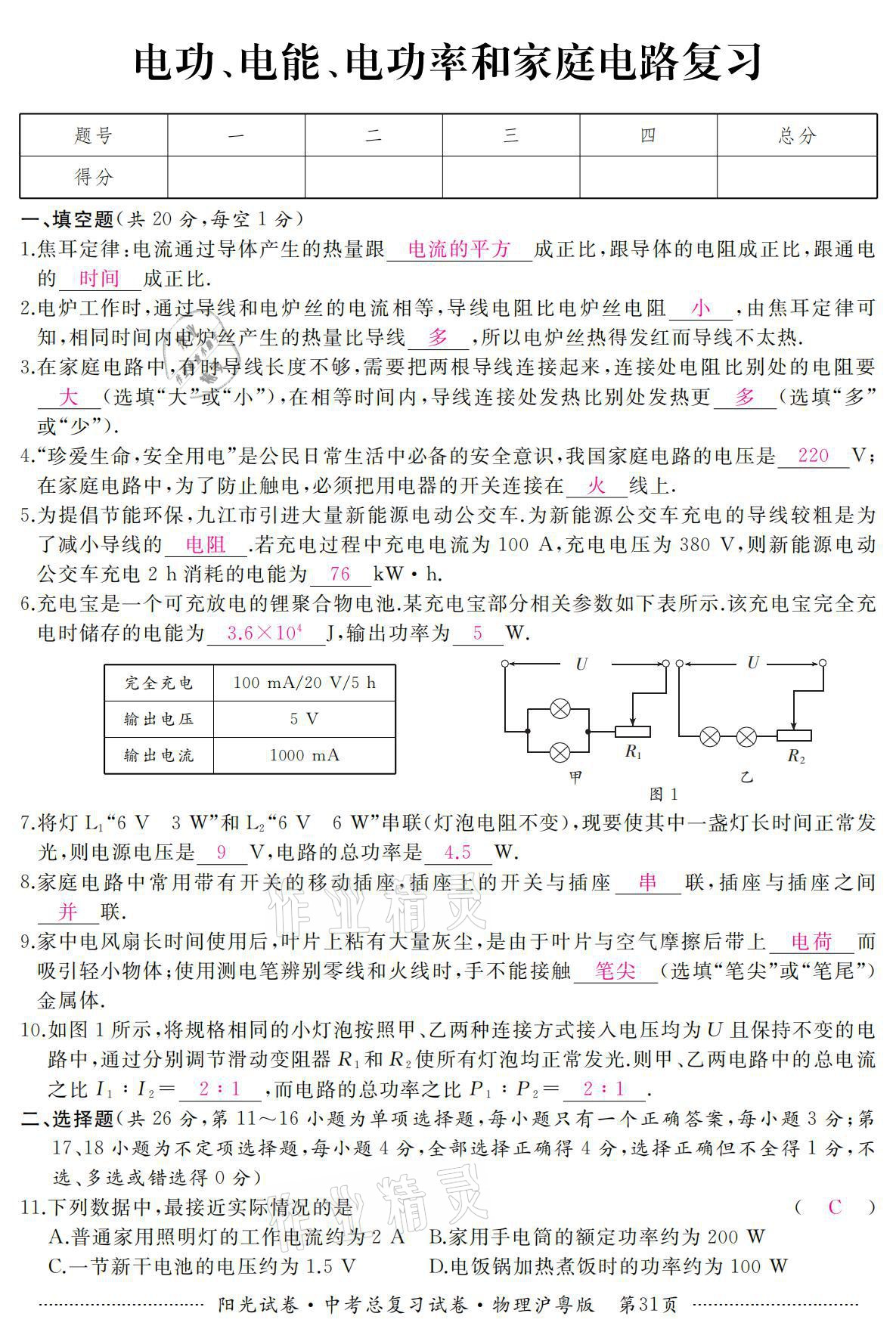 注:目前有些书本章节名称可能整理的还不是很完善,但都是按照顺序排列的,请同学们按照顺序仔细查找。练习册 2021年阳光试卷中考总复习试卷物理沪粤版 答案主要是用来给同学们做完题方便对答案用的,请勿直接抄袭。