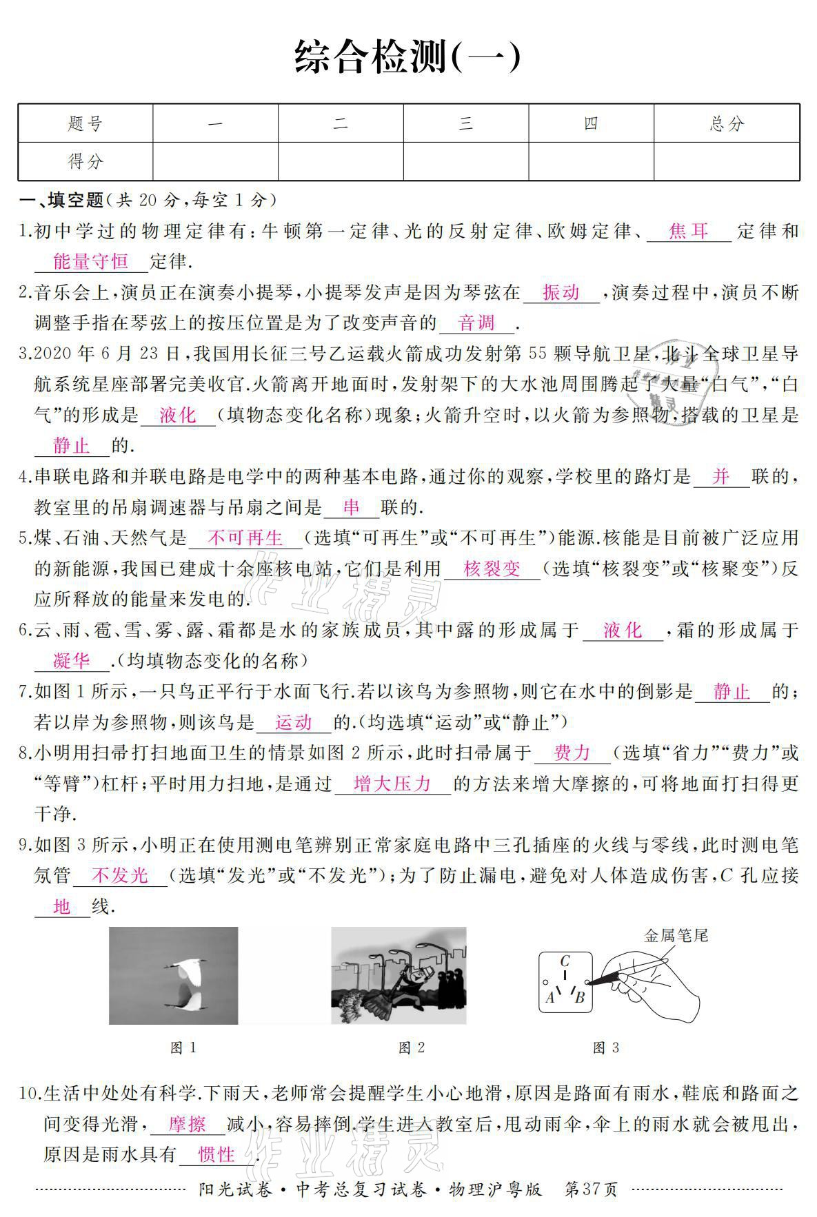 注:目前有些书本章节名称可能整理的还不是很完善,但都是按照顺序排列的,请同学们按照顺序仔细查找。练习册 2021年阳光试卷中考总复习试卷物理沪粤版 答案主要是用来给同学们做完题方便对答案用的,请勿直接抄袭。