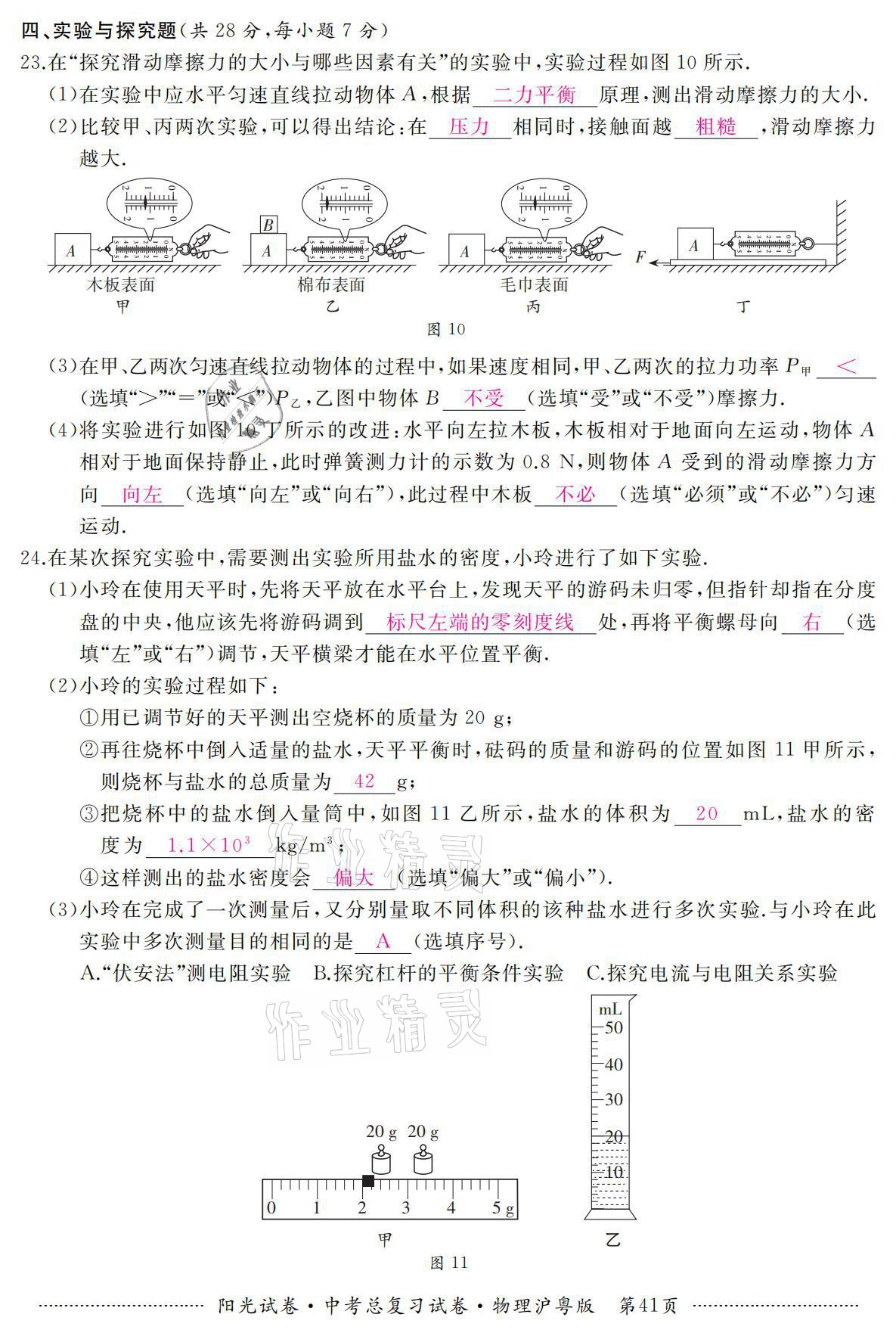 注:目前有些书本章节名称可能整理的还不是很完善,但都是按照顺序排列的,请同学们按照顺序仔细查找。练习册 2021年阳光试卷中考总复习试卷物理沪粤版 答案主要是用来给同学们做完题方便对答案用的,请勿直接抄袭。