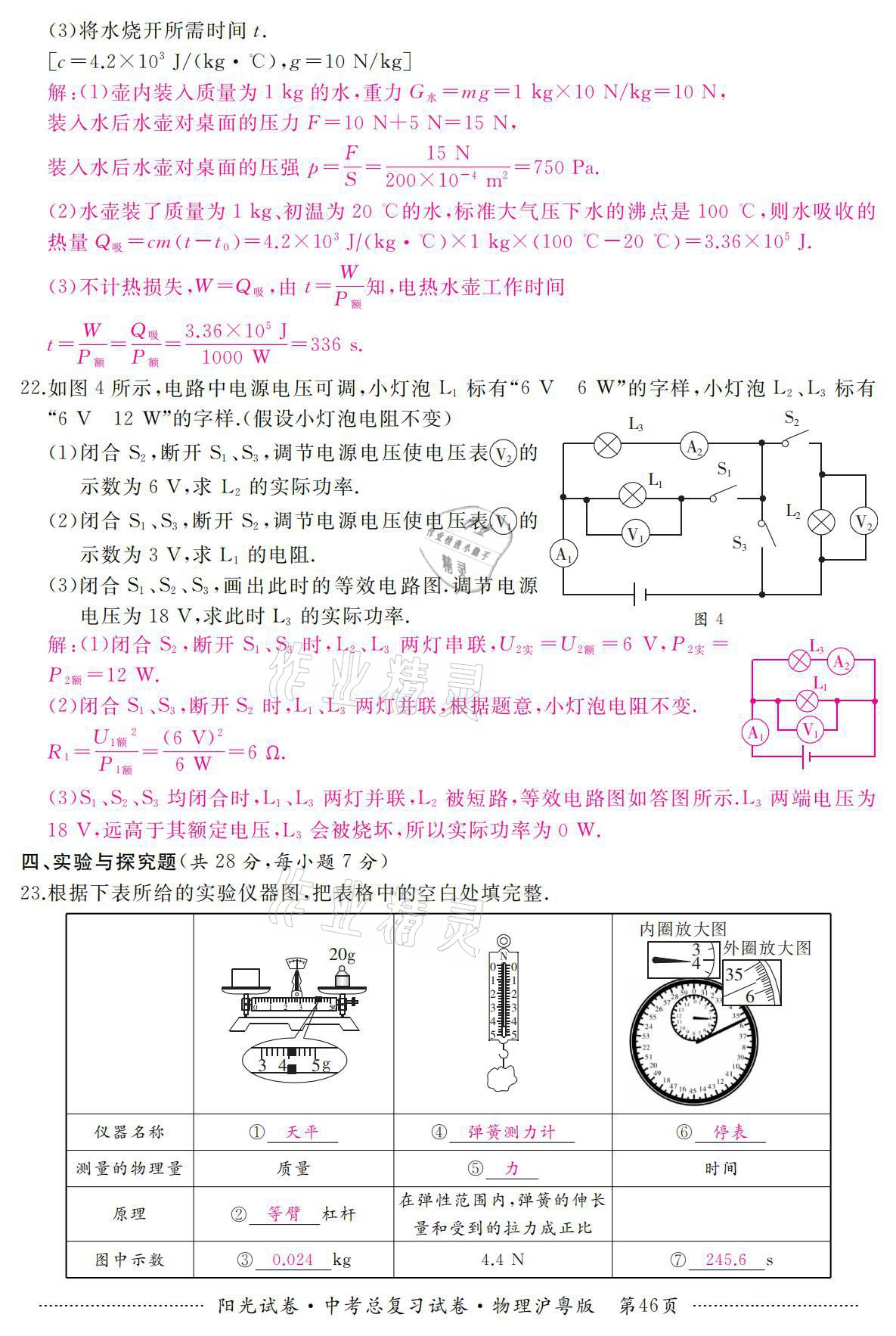 注:目前有些书本章节名称可能整理的还不是很完善,但都是按照顺序排列的,请同学们按照顺序仔细查找。练习册 2021年阳光试卷中考总复习试卷物理沪粤版 答案主要是用来给同学们做完题方便对答案用的,请勿直接抄袭。