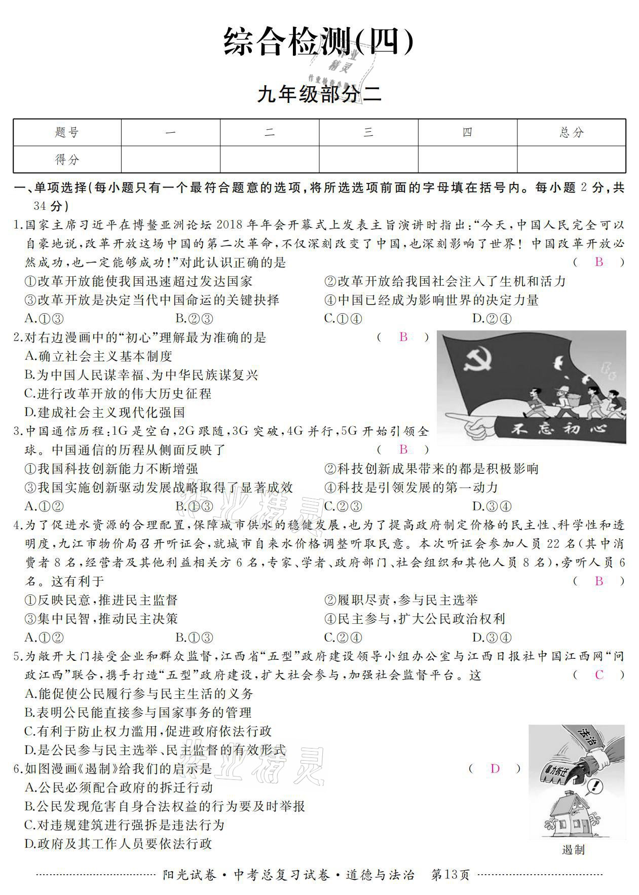 注:目前有些书本章节名称可能整理的还不是很完善,但都是按照顺序排列的,请同学们按照顺序仔细查找。练习册 2021年阳光试卷中考总复习试卷道德与法治 答案主要是用来给同学们做完题方便对答案用的,请勿直接抄袭。
