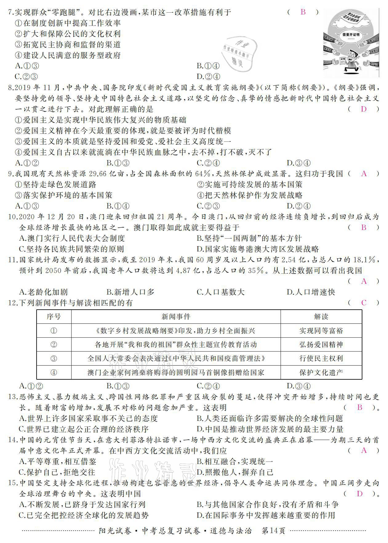 注:目前有些书本章节名称可能整理的还不是很完善,但都是按照顺序排列的,请同学们按照顺序仔细查找。练习册 2021年阳光试卷中考总复习试卷道德与法治 答案主要是用来给同学们做完题方便对答案用的,请勿直接抄袭。