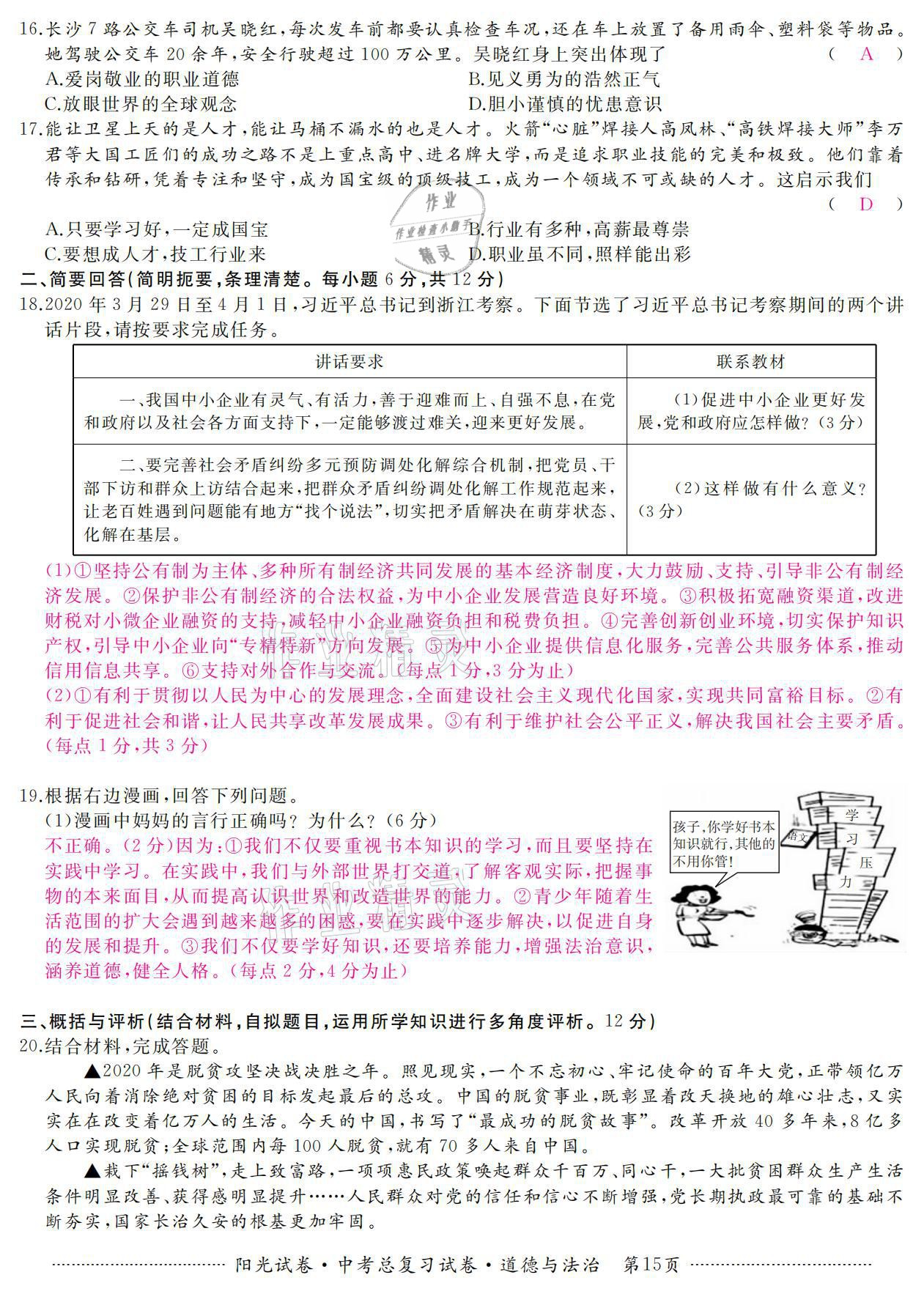 注:目前有些书本章节名称可能整理的还不是很完善,但都是按照顺序排列的,请同学们按照顺序仔细查找。练习册 2021年阳光试卷中考总复习试卷道德与法治 答案主要是用来给同学们做完题方便对答案用的,请勿直接抄袭。