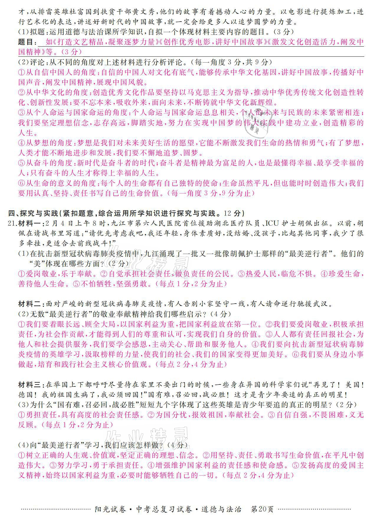 注:目前有些书本章节名称可能整理的还不是很完善,但都是按照顺序排列的,请同学们按照顺序仔细查找。练习册 2021年阳光试卷中考总复习试卷道德与法治 答案主要是用来给同学们做完题方便对答案用的,请勿直接抄袭。