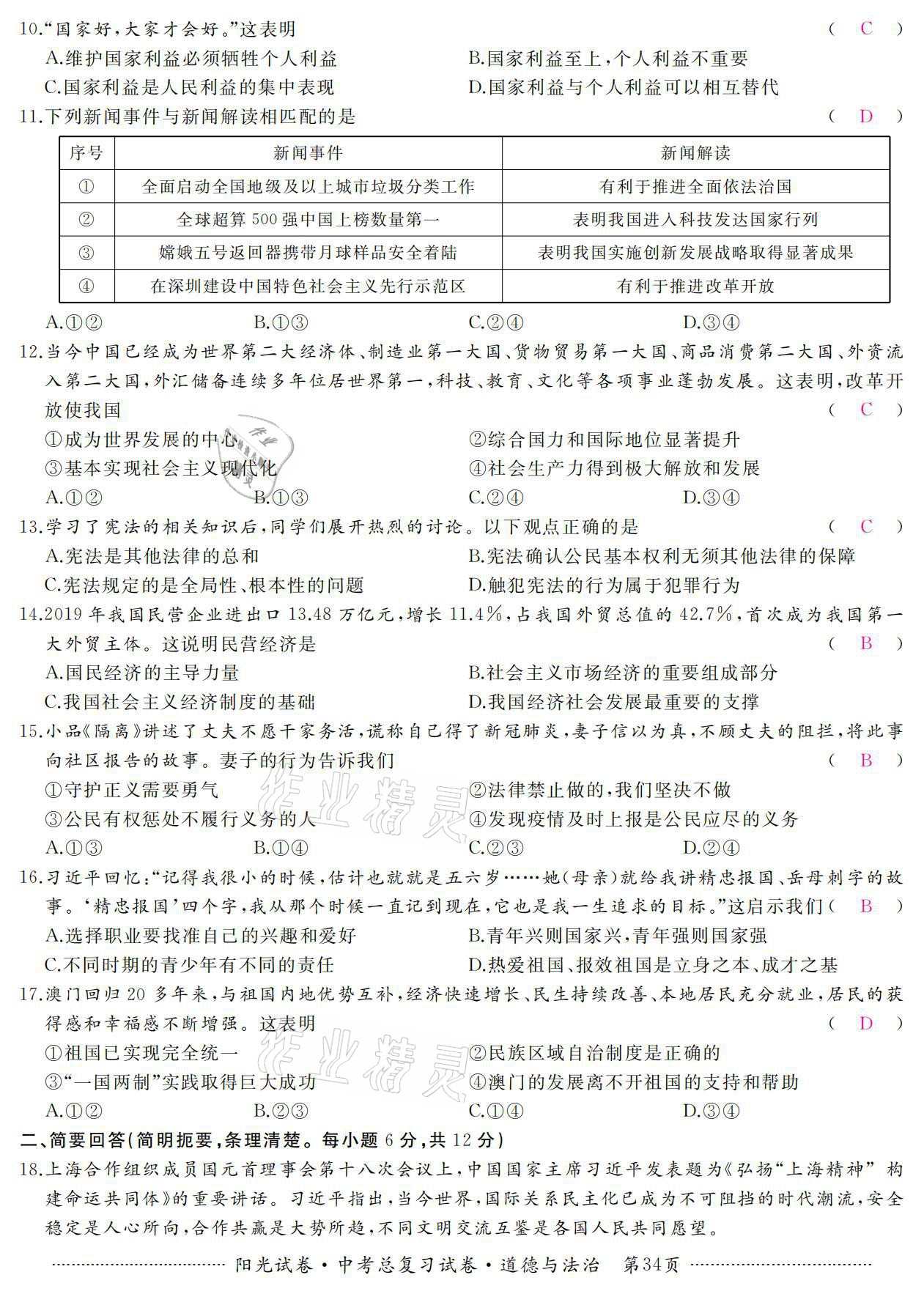 注:目前有些书本章节名称可能整理的还不是很完善,但都是按照顺序排列的,请同学们按照顺序仔细查找。练习册 2021年阳光试卷中考总复习试卷道德与法治 答案主要是用来给同学们做完题方便对答案用的,请勿直接抄袭。
