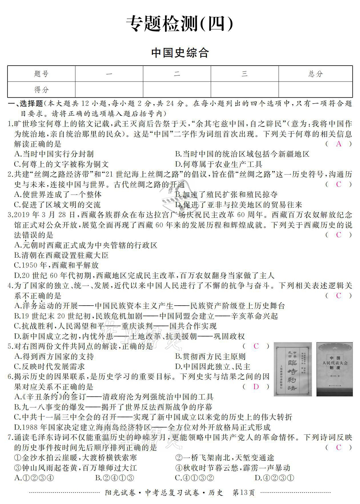注:目前有些书本章节名称可能整理的还不是很完善,但都是按照顺序排列的,请同学们按照顺序仔细查找。练习册 2021年阳光试卷中考总复习试卷历史 答案主要是用来给同学们做完题方便对答案用的,请勿直接抄袭。