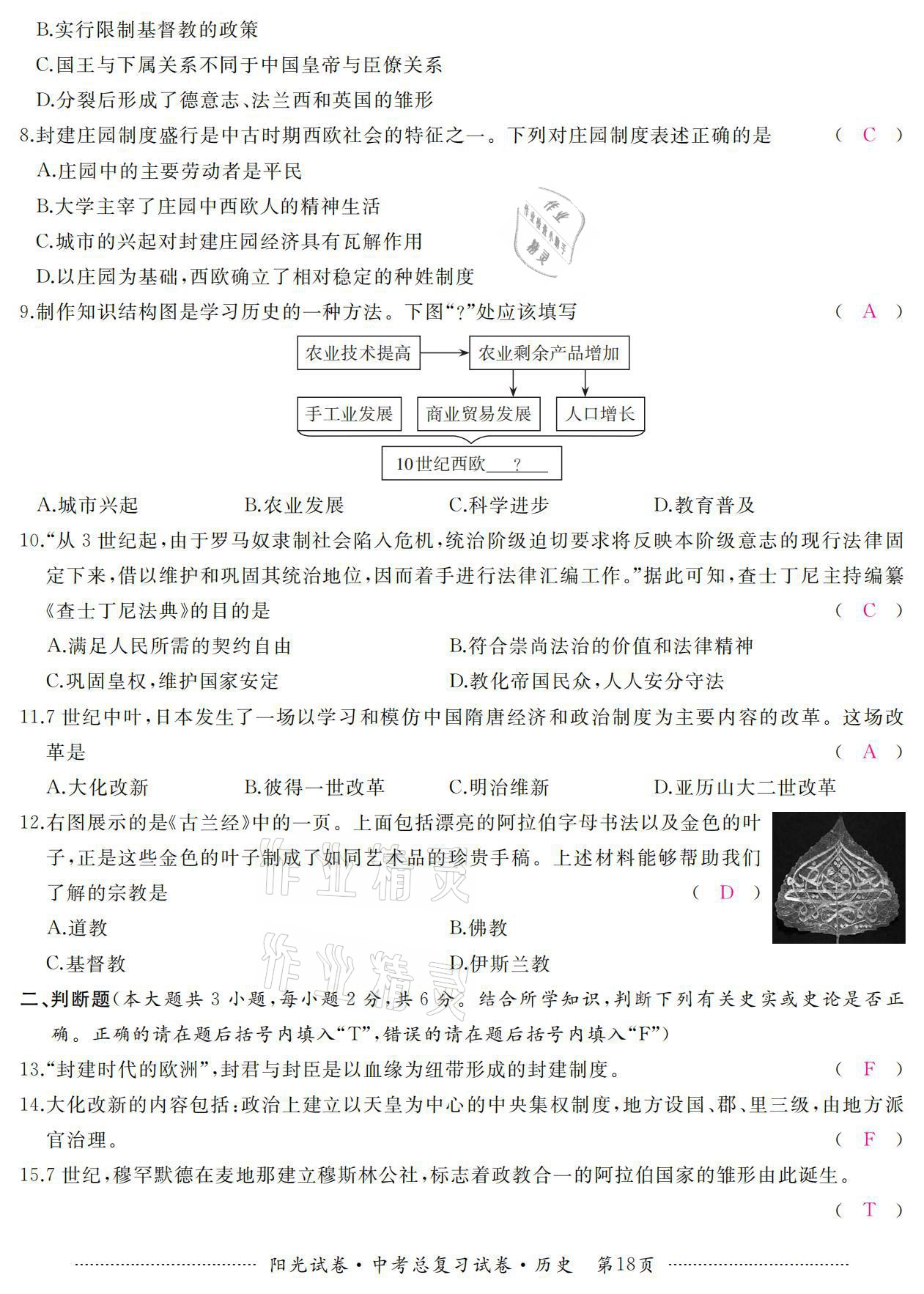 注:目前有些书本章节名称可能整理的还不是很完善,但都是按照顺序排列的,请同学们按照顺序仔细查找。练习册 2021年阳光试卷中考总复习试卷历史 答案主要是用来给同学们做完题方便对答案用的,请勿直接抄袭。
