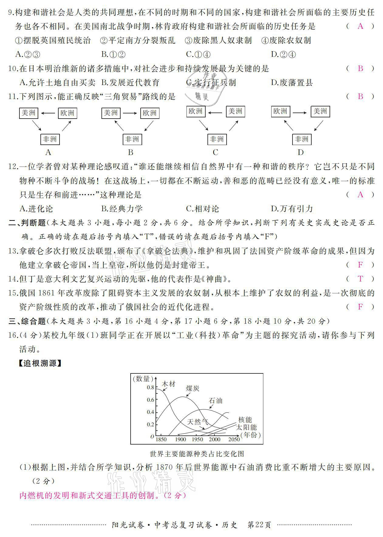 注:目前有些书本章节名称可能整理的还不是很完善,但都是按照顺序排列的,请同学们按照顺序仔细查找。练习册 2021年阳光试卷中考总复习试卷历史 答案主要是用来给同学们做完题方便对答案用的,请勿直接抄袭。