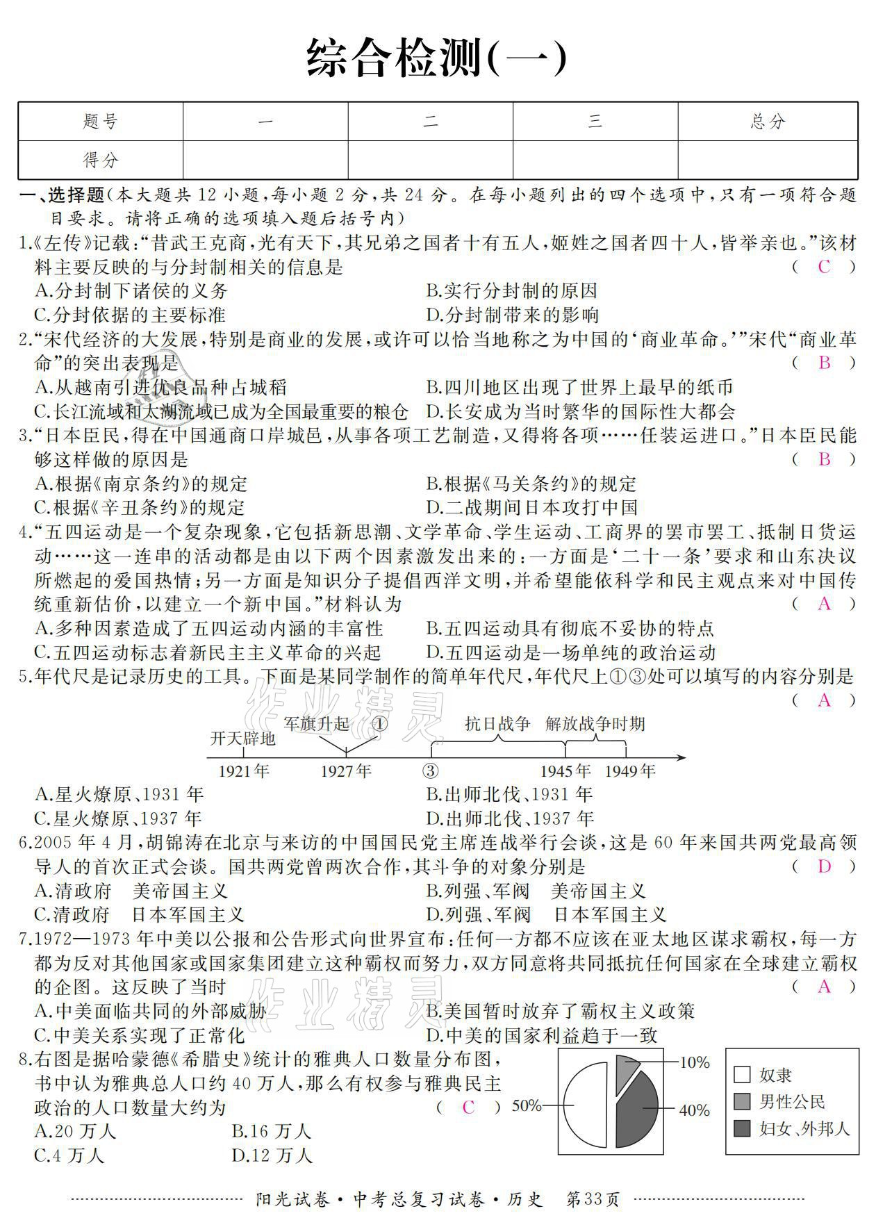 2021年阳光试卷中考总复习试卷历史
