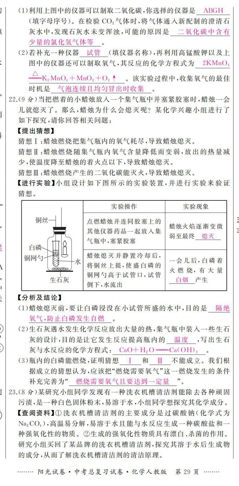 注:目前有些书本章节名称可能整理的还不是很完善,但都是按照顺序排列的,请同学们按照顺序仔细查找。练习册 2021年阳光试卷中考总复习试卷化学人教版 答案主要是用来给同学们做完题方便对答案用的,请勿直接抄袭。