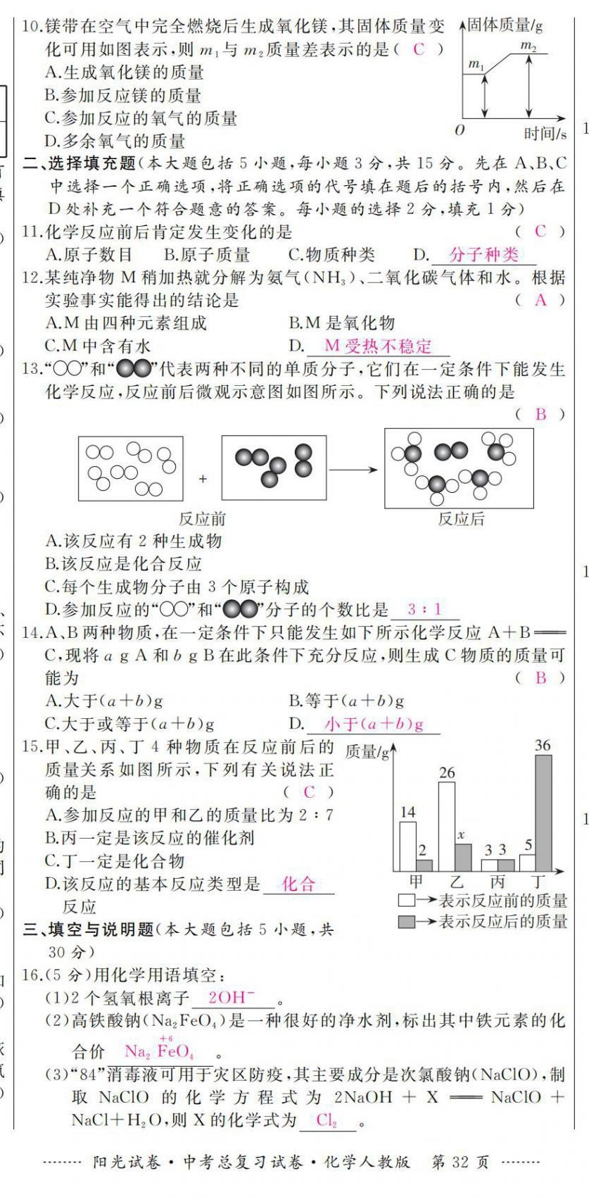 注:目前有些书本章节名称可能整理的还不是很完善,但都是按照顺序排列的,请同学们按照顺序仔细查找。练习册 2021年阳光试卷中考总复习试卷化学人教版 答案主要是用来给同学们做完题方便对答案用的,请勿直接抄袭。