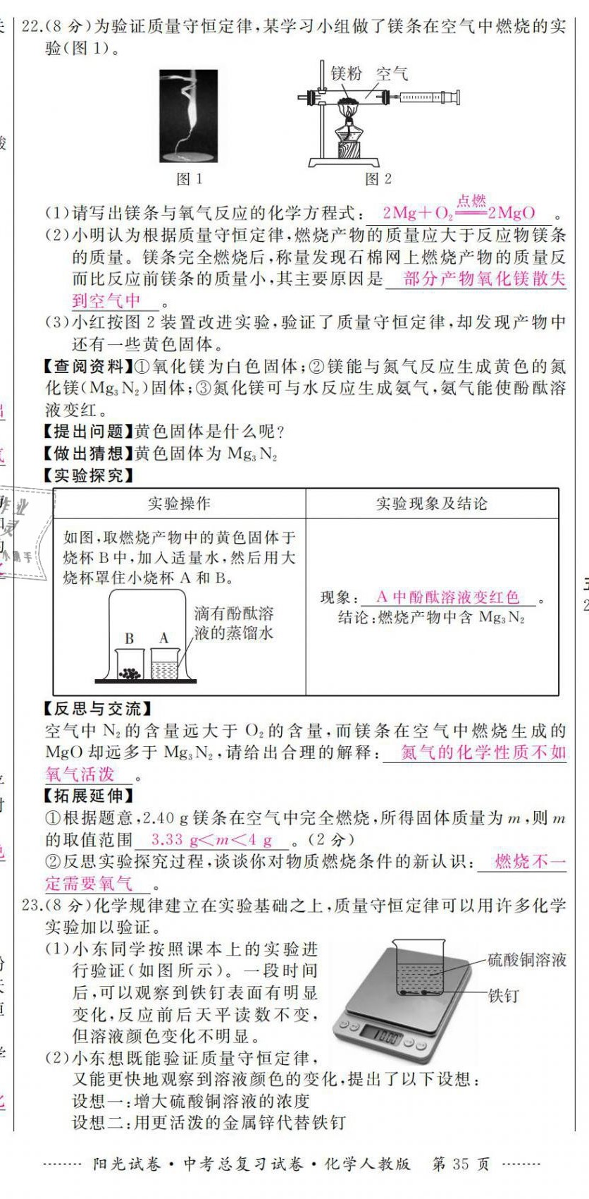 注:目前有些书本章节名称可能整理的还不是很完善,但都是按照顺序排列的,请同学们按照顺序仔细查找。练习册 2021年阳光试卷中考总复习试卷化学人教版 答案主要是用来给同学们做完题方便对答案用的,请勿直接抄袭。