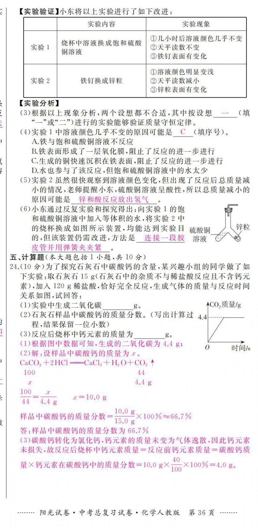 注:目前有些书本章节名称可能整理的还不是很完善,但都是按照顺序排列的,请同学们按照顺序仔细查找。练习册 2021年阳光试卷中考总复习试卷化学人教版 答案主要是用来给同学们做完题方便对答案用的,请勿直接抄袭。