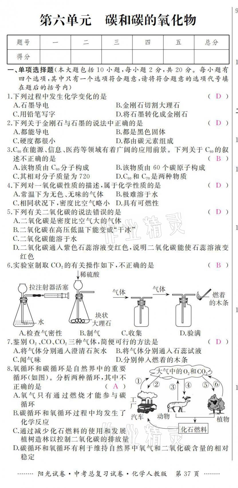 注:目前有些书本章节名称可能整理的还不是很完善,但都是按照顺序排列的,请同学们按照顺序仔细查找。练习册 2021年阳光试卷中考总复习试卷化学人教版 答案主要是用来给同学们做完题方便对答案用的,请勿直接抄袭。