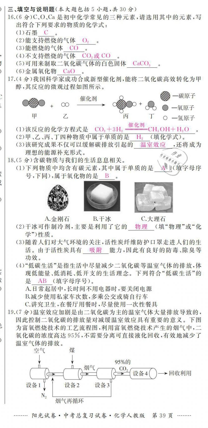 注:目前有些书本章节名称可能整理的还不是很完善,但都是按照顺序排列的,请同学们按照顺序仔细查找。练习册 2021年阳光试卷中考总复习试卷化学人教版 答案主要是用来给同学们做完题方便对答案用的,请勿直接抄袭。