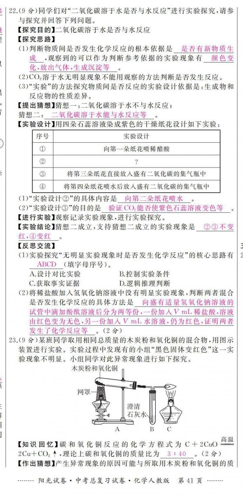 注:目前有些书本章节名称可能整理的还不是很完善,但都是按照顺序排列的,请同学们按照顺序仔细查找。练习册 2021年阳光试卷中考总复习试卷化学人教版 答案主要是用来给同学们做完题方便对答案用的,请勿直接抄袭。