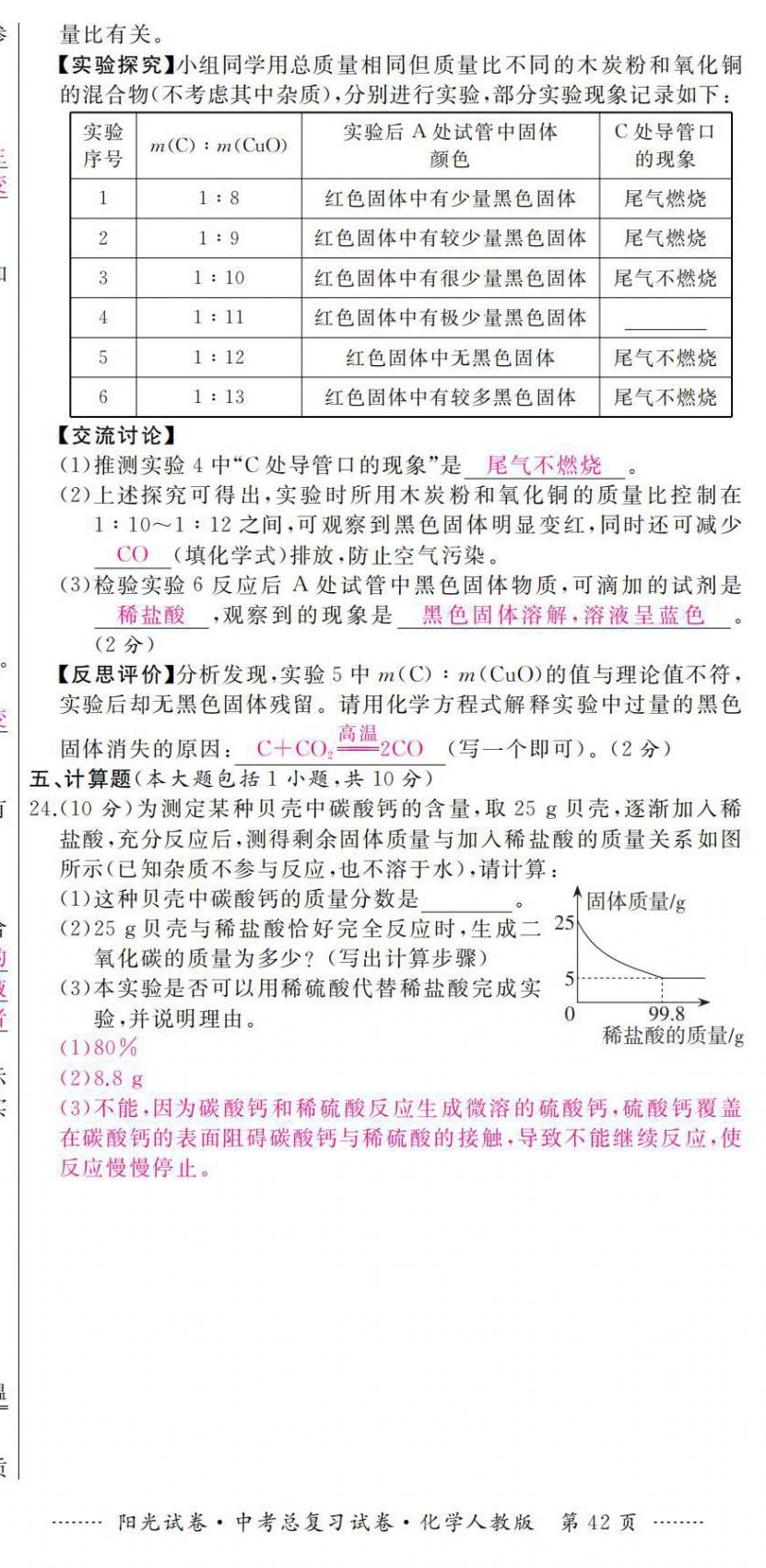注:目前有些书本章节名称可能整理的还不是很完善,但都是按照顺序排列的,请同学们按照顺序仔细查找。练习册 2021年阳光试卷中考总复习试卷化学人教版 答案主要是用来给同学们做完题方便对答案用的,请勿直接抄袭。