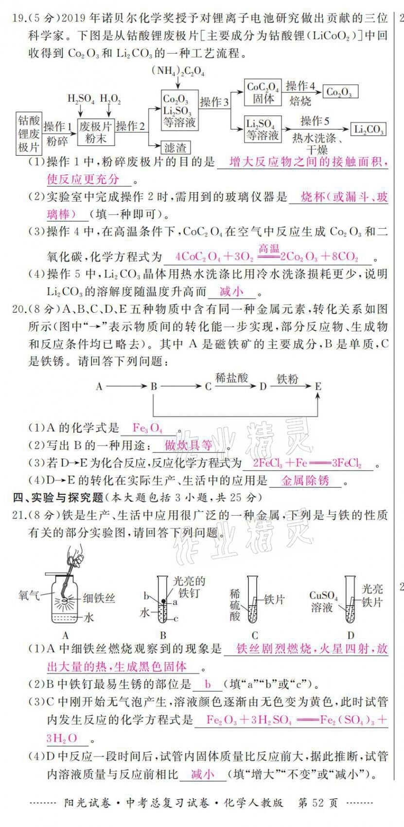 注:目前有些书本章节名称可能整理的还不是很完善,但都是按照顺序排列的,请同学们按照顺序仔细查找。练习册 2021年阳光试卷中考总复习试卷化学人教版 答案主要是用来给同学们做完题方便对答案用的,请勿直接抄袭。