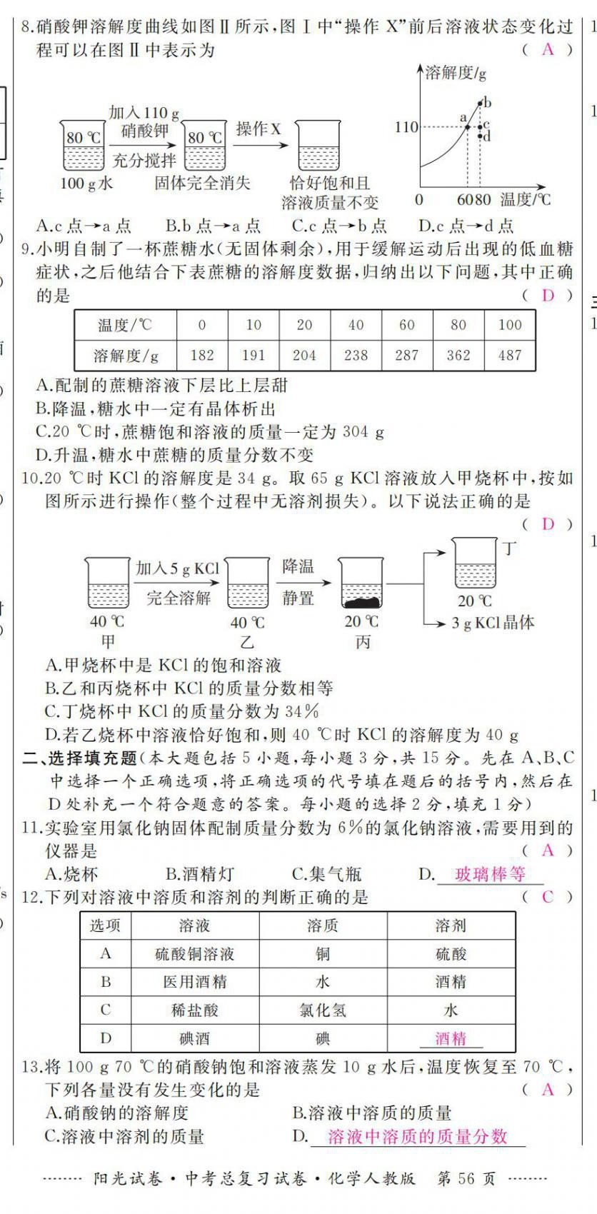 注:目前有些书本章节名称可能整理的还不是很完善,但都是按照顺序排列的,请同学们按照顺序仔细查找。练习册 2021年阳光试卷中考总复习试卷化学人教版 答案主要是用来给同学们做完题方便对答案用的,请勿直接抄袭。