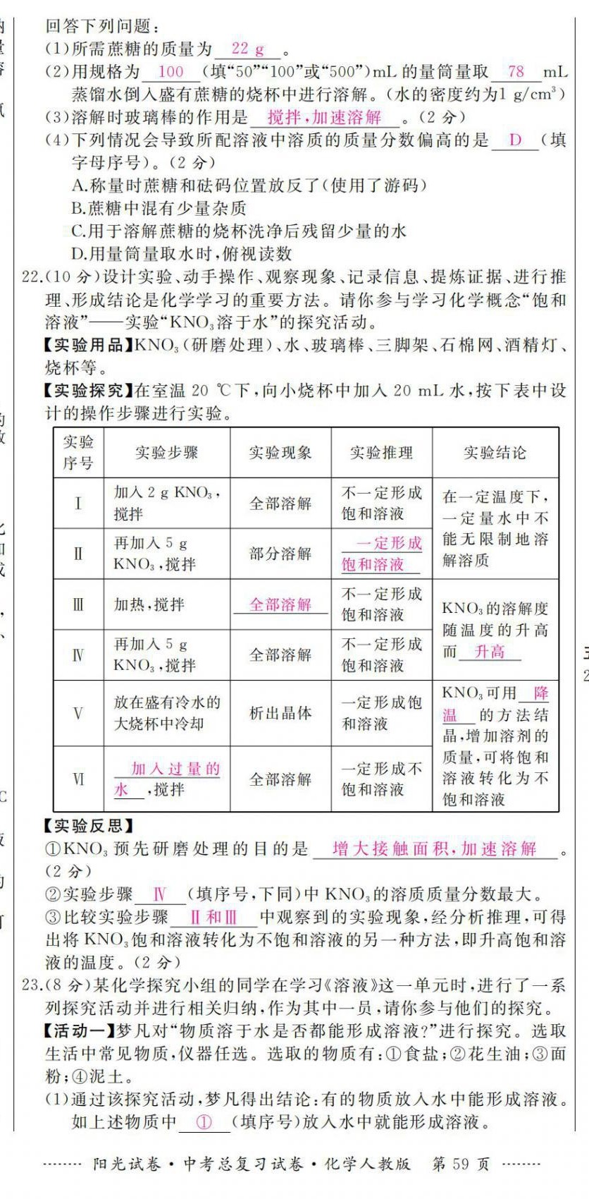 注:目前有些书本章节名称可能整理的还不是很完善,但都是按照顺序排列的,请同学们按照顺序仔细查找。练习册 2021年阳光试卷中考总复习试卷化学人教版 答案主要是用来给同学们做完题方便对答案用的,请勿直接抄袭。