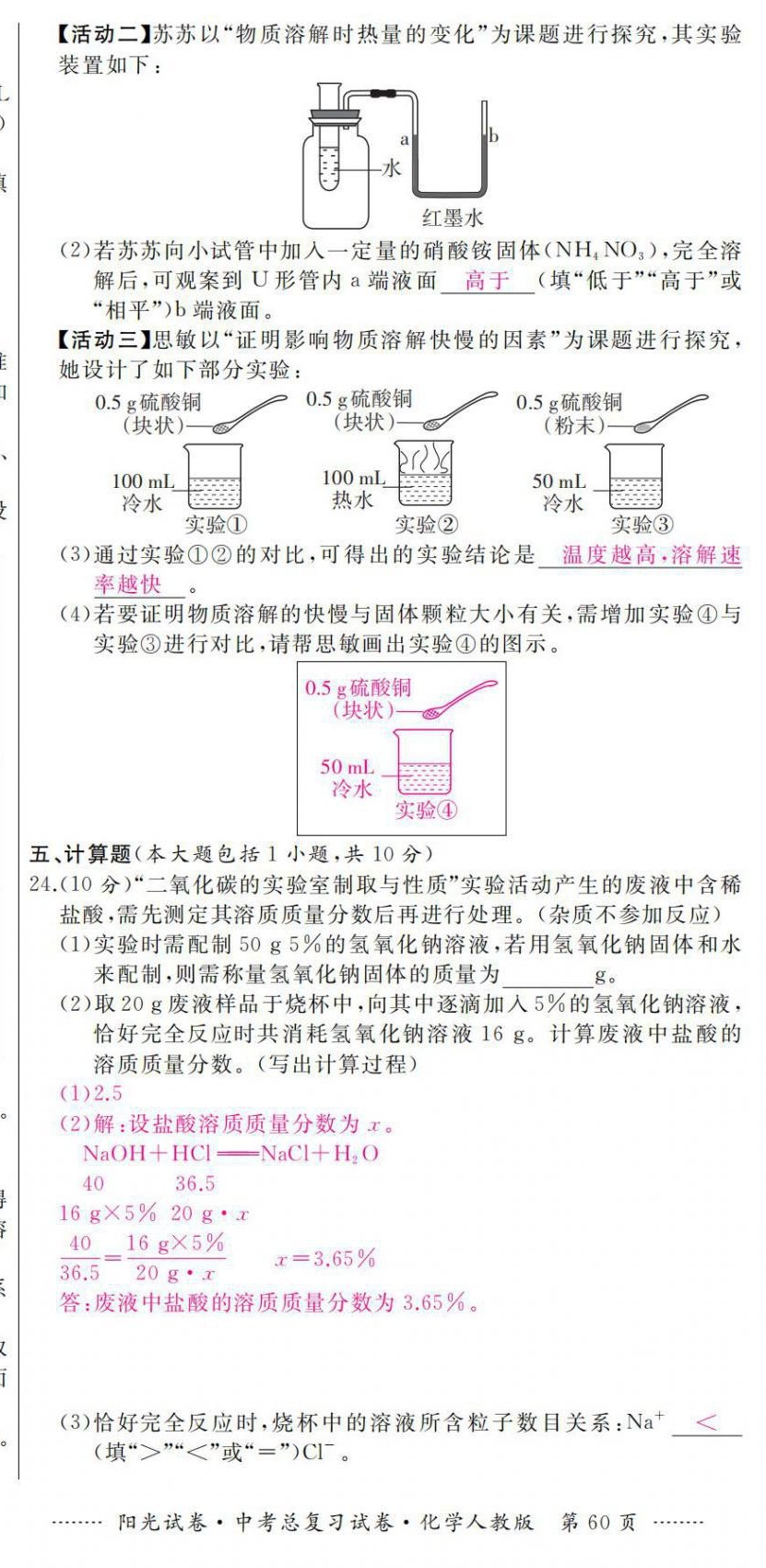 注:目前有些书本章节名称可能整理的还不是很完善,但都是按照顺序排列的,请同学们按照顺序仔细查找。练习册 2021年阳光试卷中考总复习试卷化学人教版 答案主要是用来给同学们做完题方便对答案用的,请勿直接抄袭。