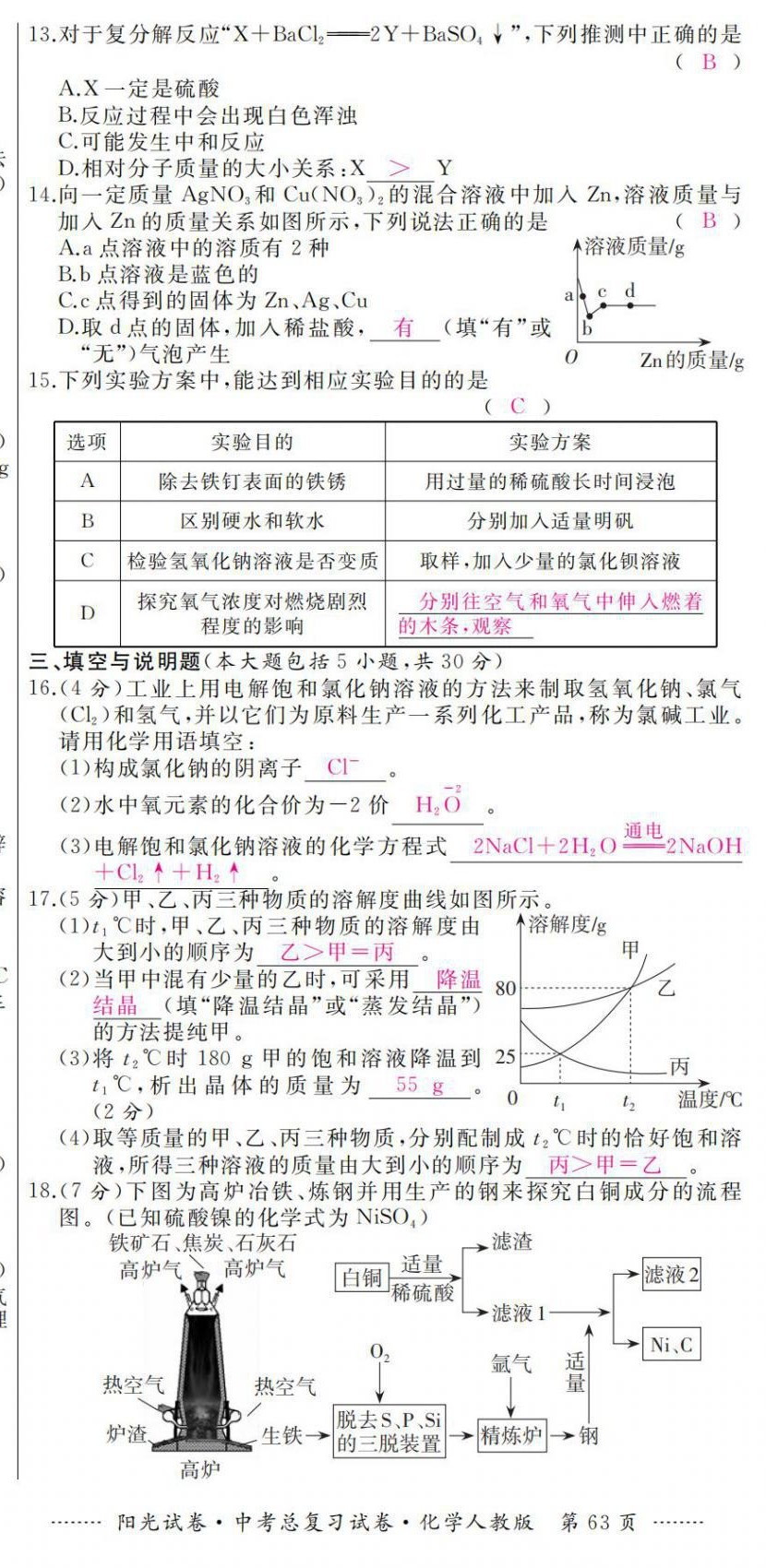 注:目前有些书本章节名称可能整理的还不是很完善,但都是按照顺序排列的,请同学们按照顺序仔细查找。练习册 2021年阳光试卷中考总复习试卷化学人教版 答案主要是用来给同学们做完题方便对答案用的,请勿直接抄袭。