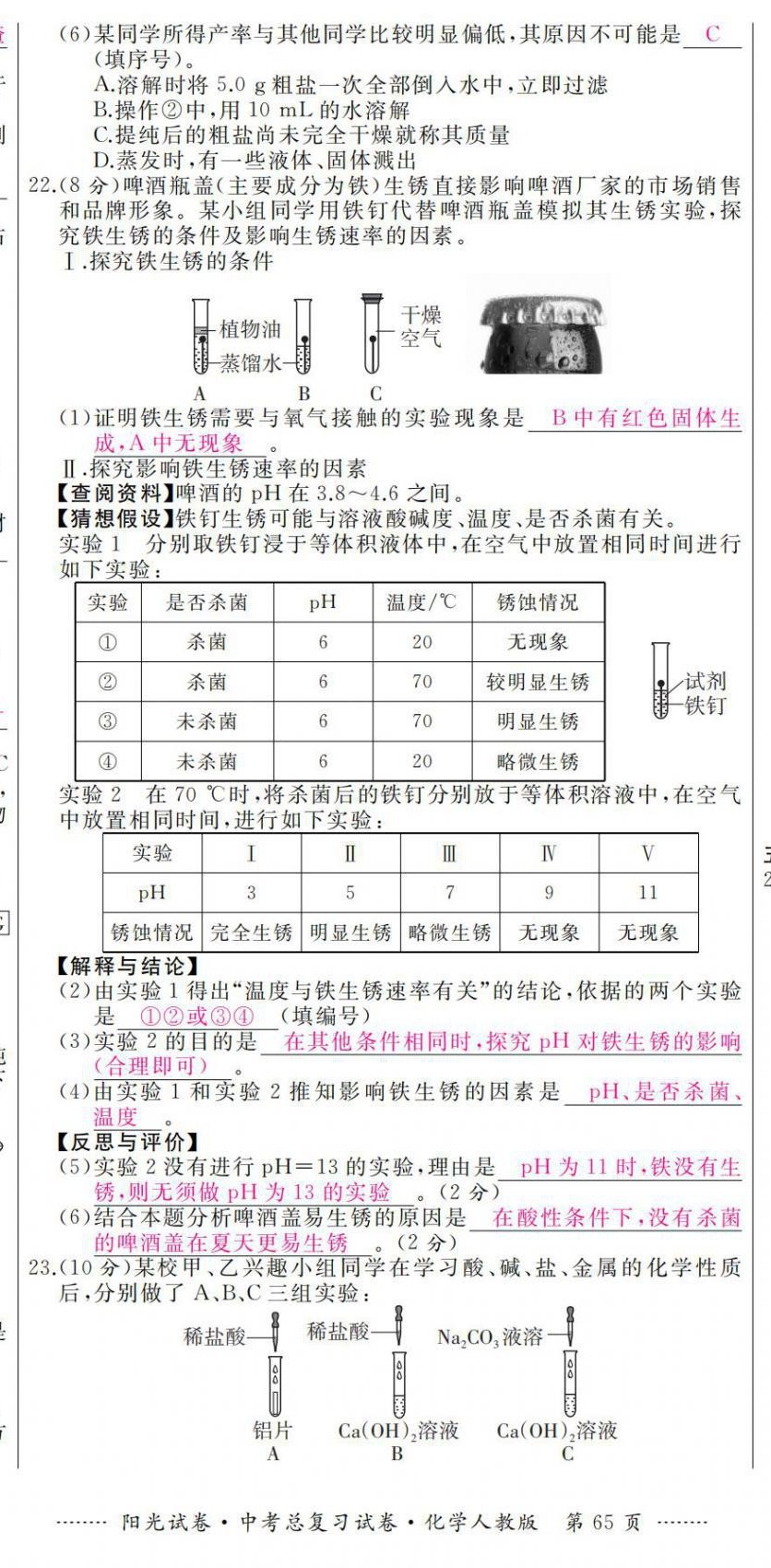 注:目前有些书本章节名称可能整理的还不是很完善,但都是按照顺序排列的,请同学们按照顺序仔细查找。练习册 2021年阳光试卷中考总复习试卷化学人教版 答案主要是用来给同学们做完题方便对答案用的,请勿直接抄袭。